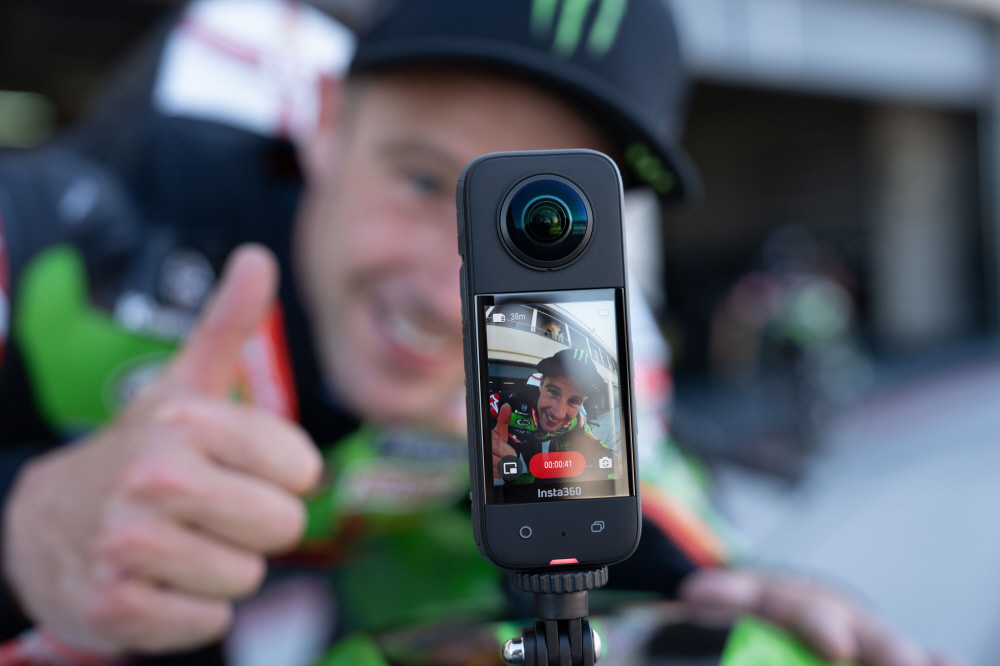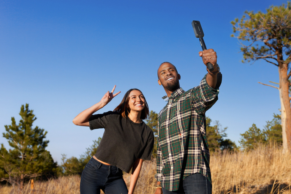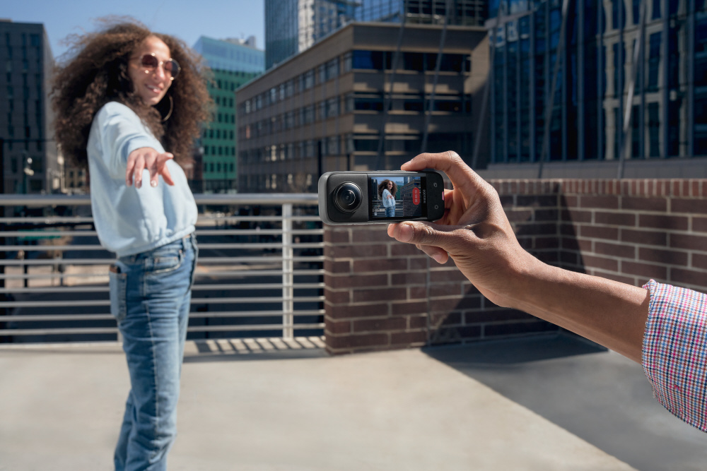 360度撮影、アクションにも対応する頑丈なハードウェア、AI搭載のソフトウェアを備えたアクションカメラ「Insta360 X3」と、360度撮影時に自動で映像から消える「見えない自撮り棒」のセット。
