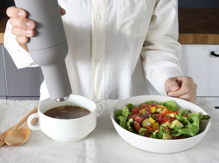 フタを外したりボタンを押す必要がなく、手軽に調味料を挽けます。
