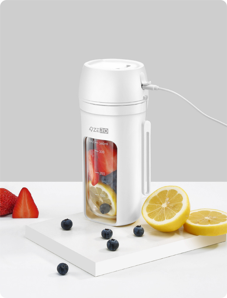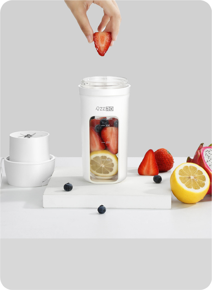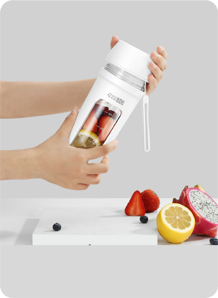 『MIXER+V3』はミキサーとしては珍しいタンブラー型。ボタン1つで作動し、およそ40秒ほどで完成(食材により異なる)。キャップを外せば、そのまま飲むことができます*。(* 基本的に、ストローで飲むことを想定して開発されています。特に繊維質が多かったり、粘度の高い液体にはストローをご使用ください。)コップに注ぐ必要がないので、ミキサーの他に洗い物は不要です。