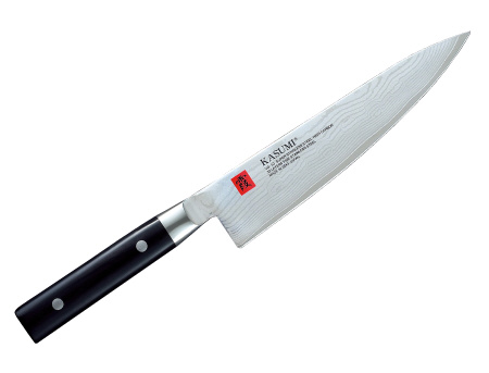 切れ味は他の 包丁に類を見ない持続性を持ち、末永くご使用頂けます。頑丈な黒積層強化木柄の付いた優雅で美しい霞 KASUMI包丁は熟練した職人によって一丁づつ丁寧に仕上げられます。主に肉を切るのに使用しますが、野菜等にも使用できます。