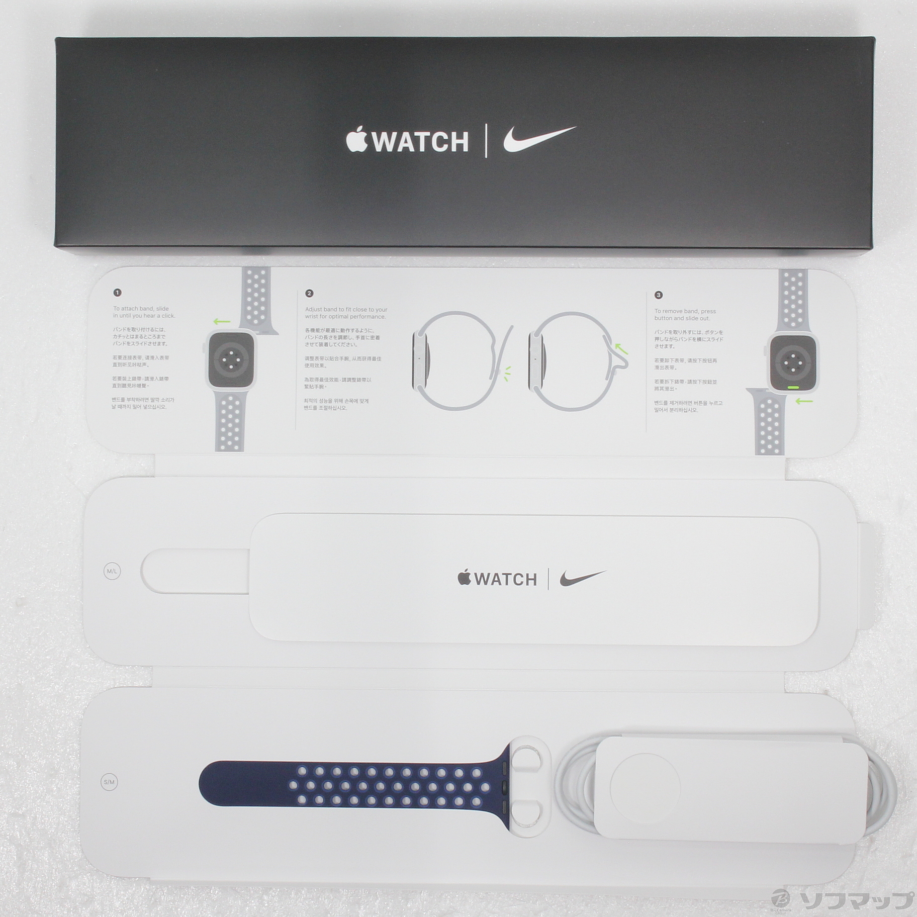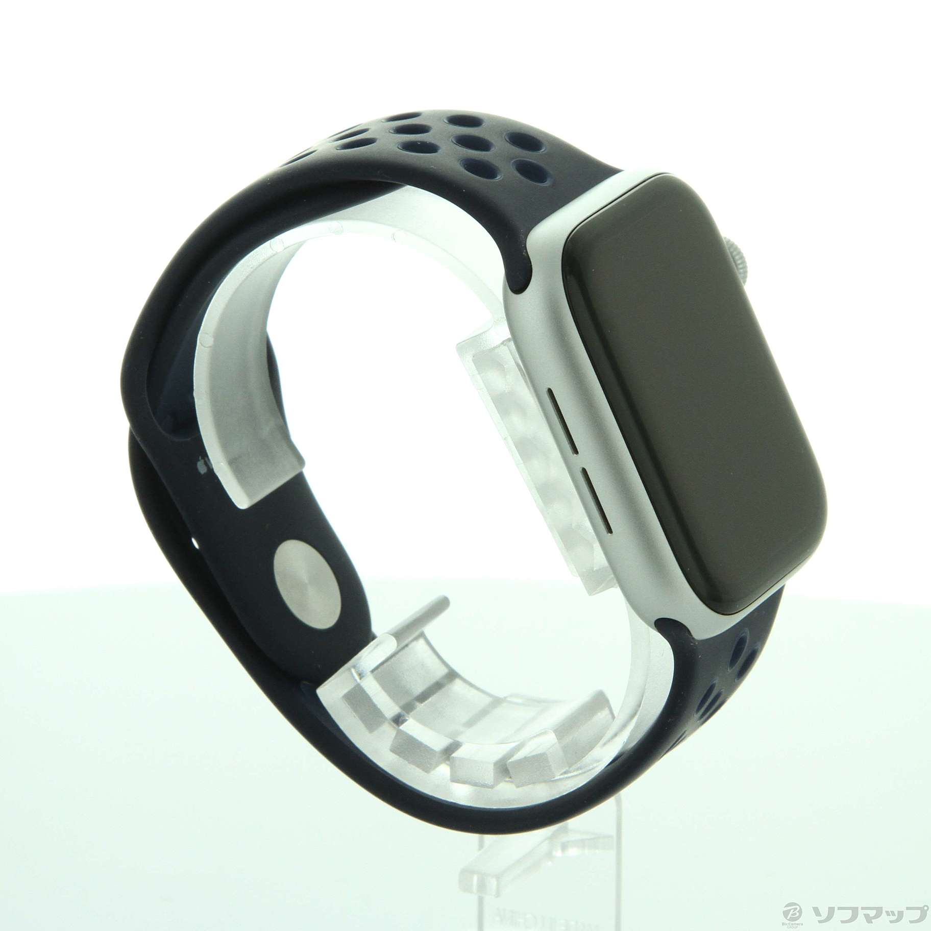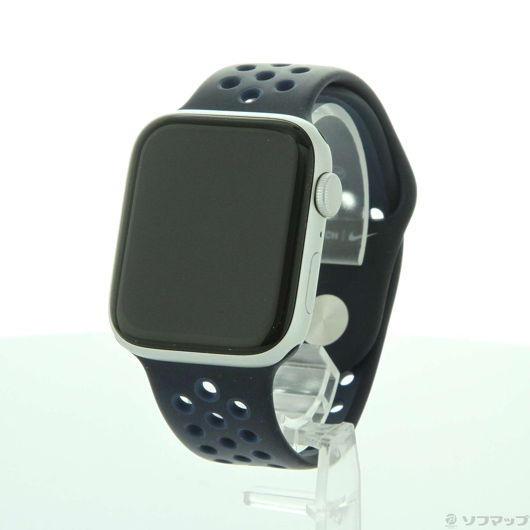 〔中古品〕 Apple Watch SE 第1世代 GPS 44mm シルバーアルミニウムケース ミッドナイトネイビー/ミスティックネイビーNikeスポーツバンド