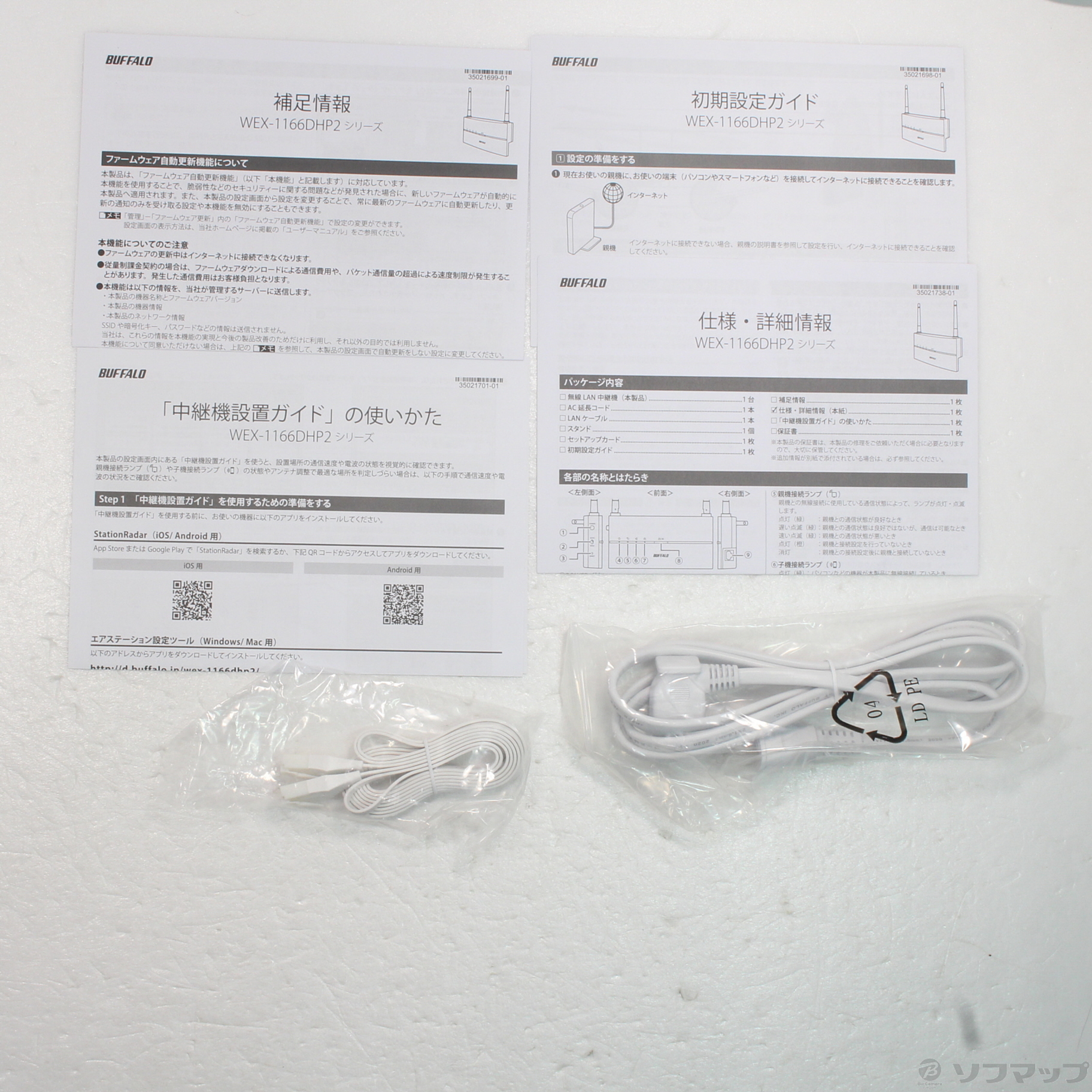 中古商品ランクについて 付属品・商品状態について 〔付属品〕初期設定ガイド、補足情報、仕様・詳細情報、「中継器設置ガイド」の使いかた、スタンド、セットアップカード、AC延長コード、LANケーブル