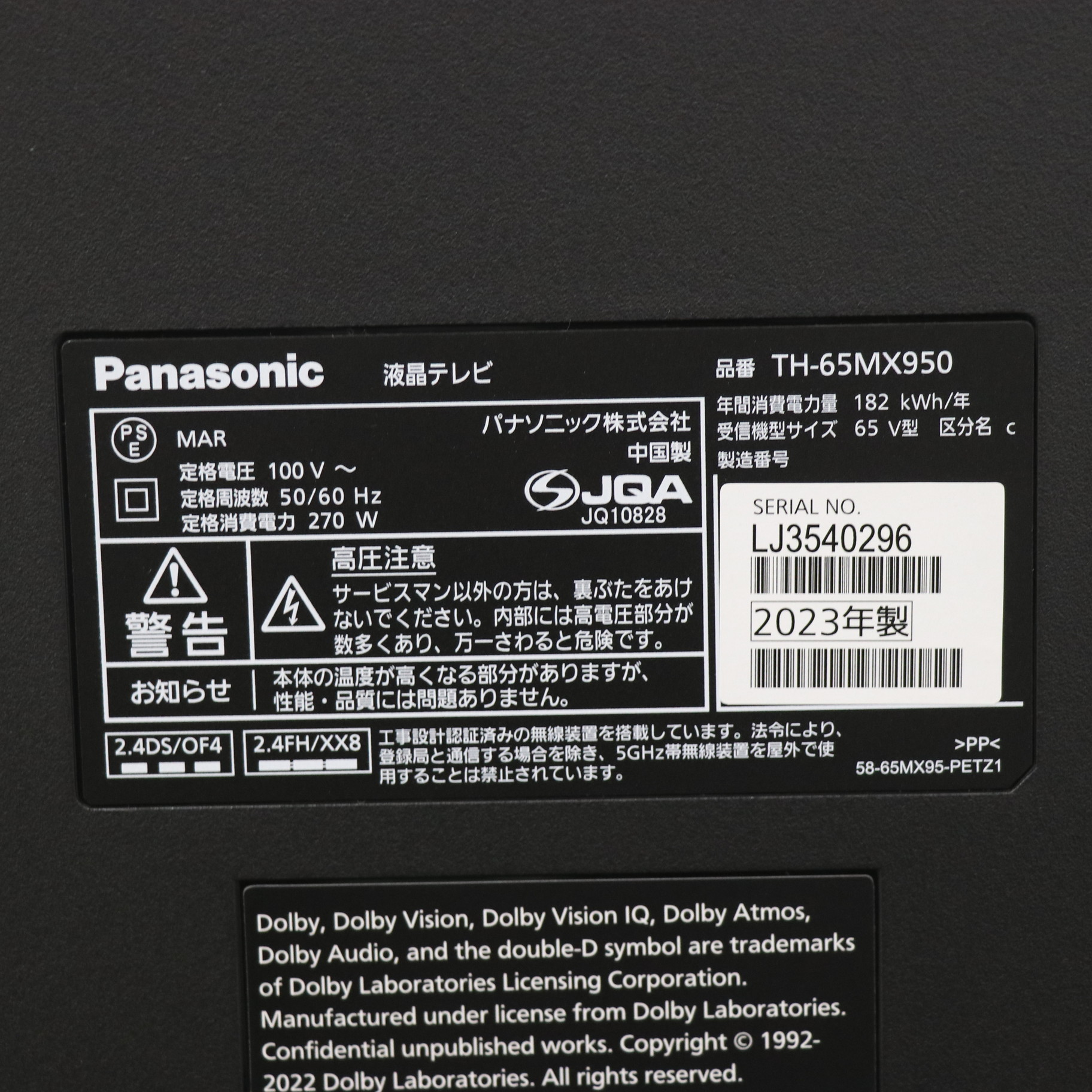 〔展示品〕 液晶テレビ VIERA(ビエラ) TH-65MX950 [65V型 /Bluetooth対応 /4K対応 /BS・CS 4Kチューナー内蔵 /YouTube対応]