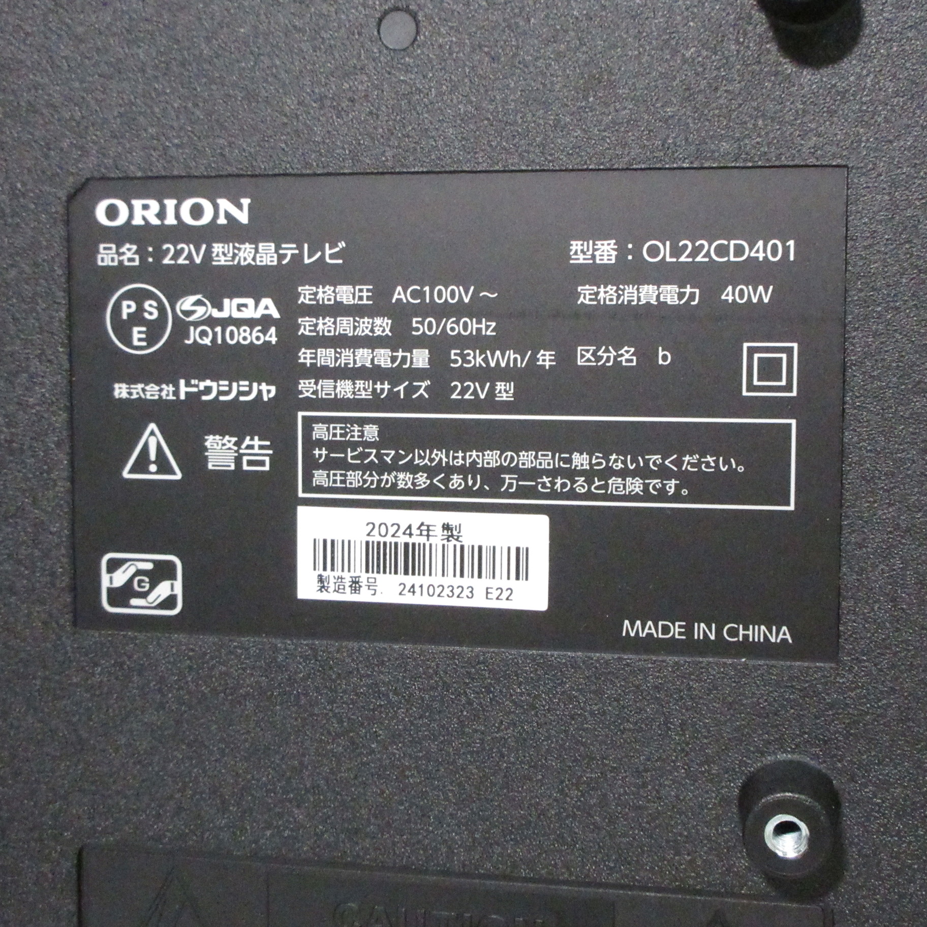 〔中古品〕 液晶テレビ ORION BASIC ROOMシリーズ OL22CD401 22V型 /フルハイビジョン