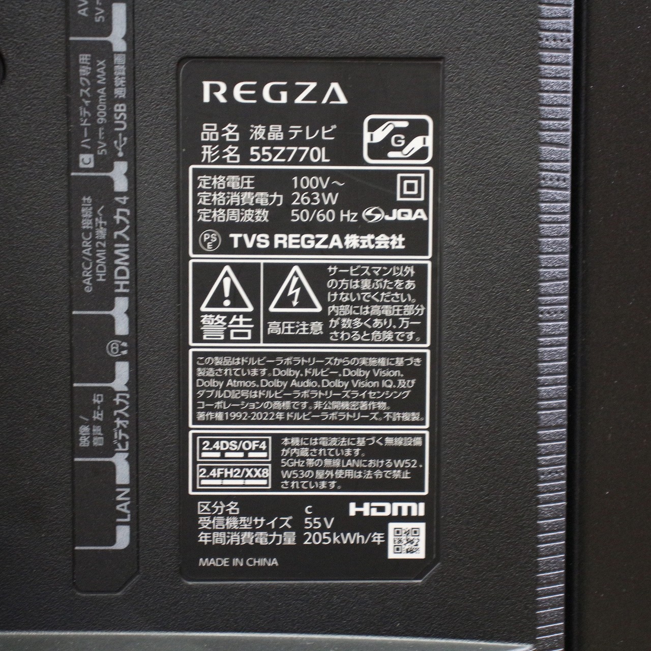 〔展示品〕 液晶テレビ REGZA(レグザ) 55Z770L [55V型 /Bluetooth対応 /4K対応 /BS・CS 4Kチューナー内蔵 /YouTube対応]