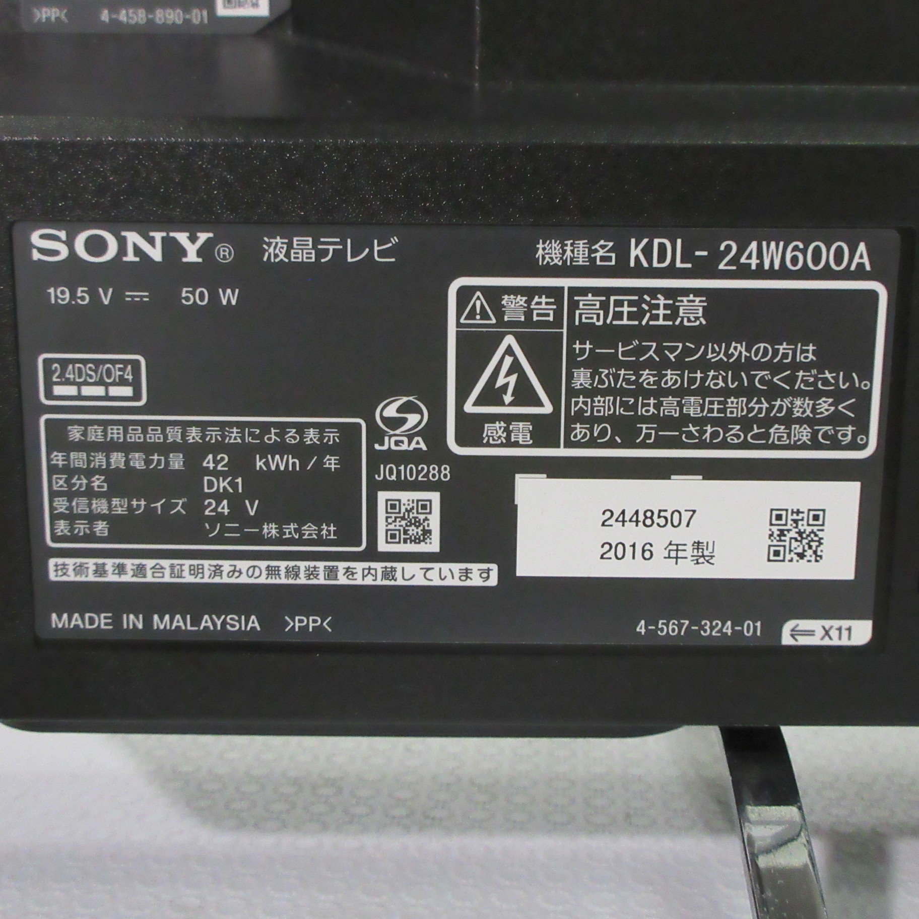 〔中古品〕 24V型 地上・BS・110度CSチューナー内蔵 ハイビジョン液晶テレビ(ブラック) KDL-24W600A-B(USB HDD録画対応) [25V型 /ハイビジョン]