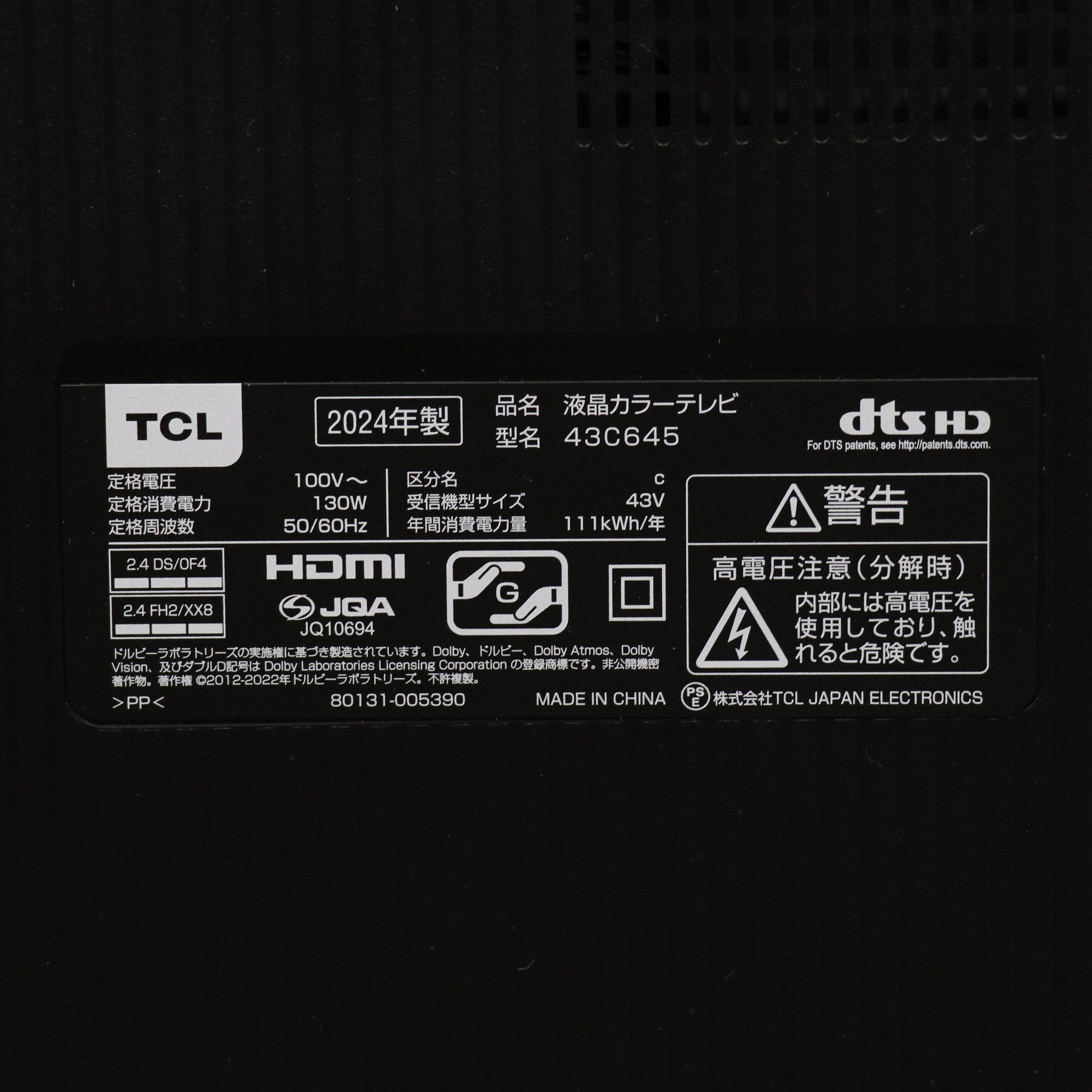 〔ジャンク品〕 液晶テレビ C645シリーズ 43C645 [43V型 /4K対応 /BS・CS 4Kチューナー内蔵 /YouTube対応]
