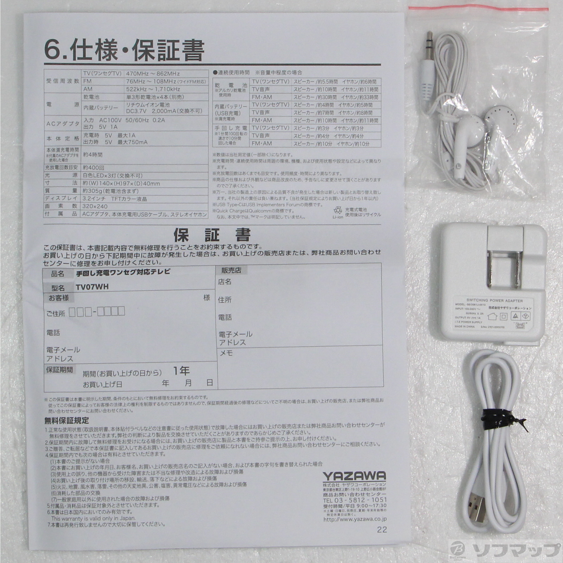 商品名 〔展示品〕 TV07WH ワンセグテレビ 手回し充電対応