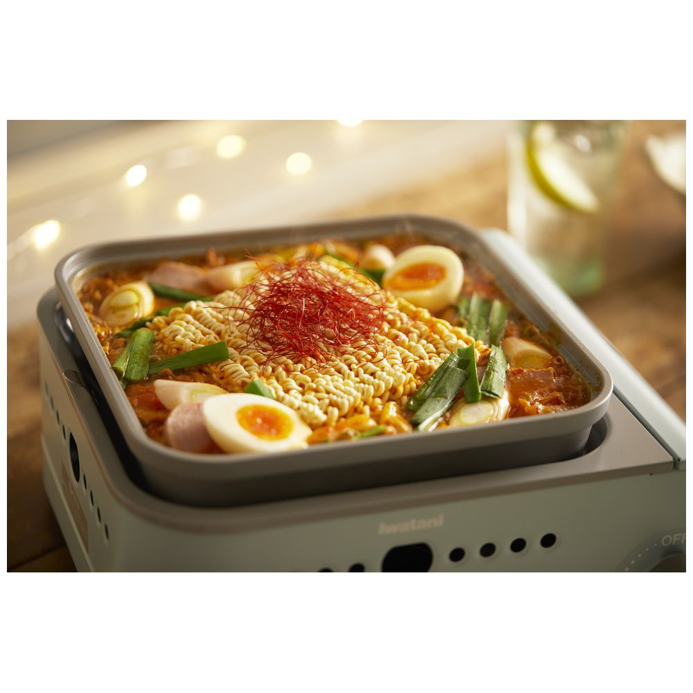 ■カセットボンベが燃料のガス式ホットプレート。ガス火ならではのパワーで美味しく調理が可能。