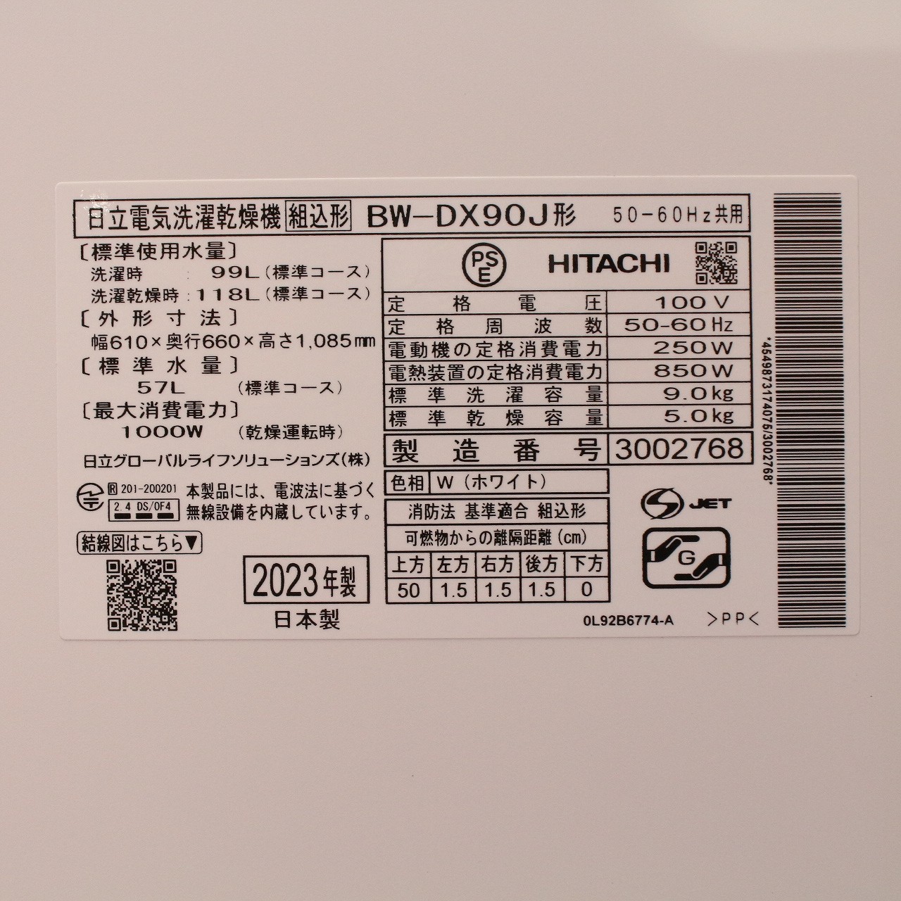 中古商品ランクについて 付属品・商品状態について 〔付属品〕給水ホース、お湯取ホース、クリーンフィルター、お湯取ホース掛け、液体洗剤タンク、柔軟剤タンク、脚キャップ(4mm)、脚キャップ(8mm)、糸くずフィルター×2個