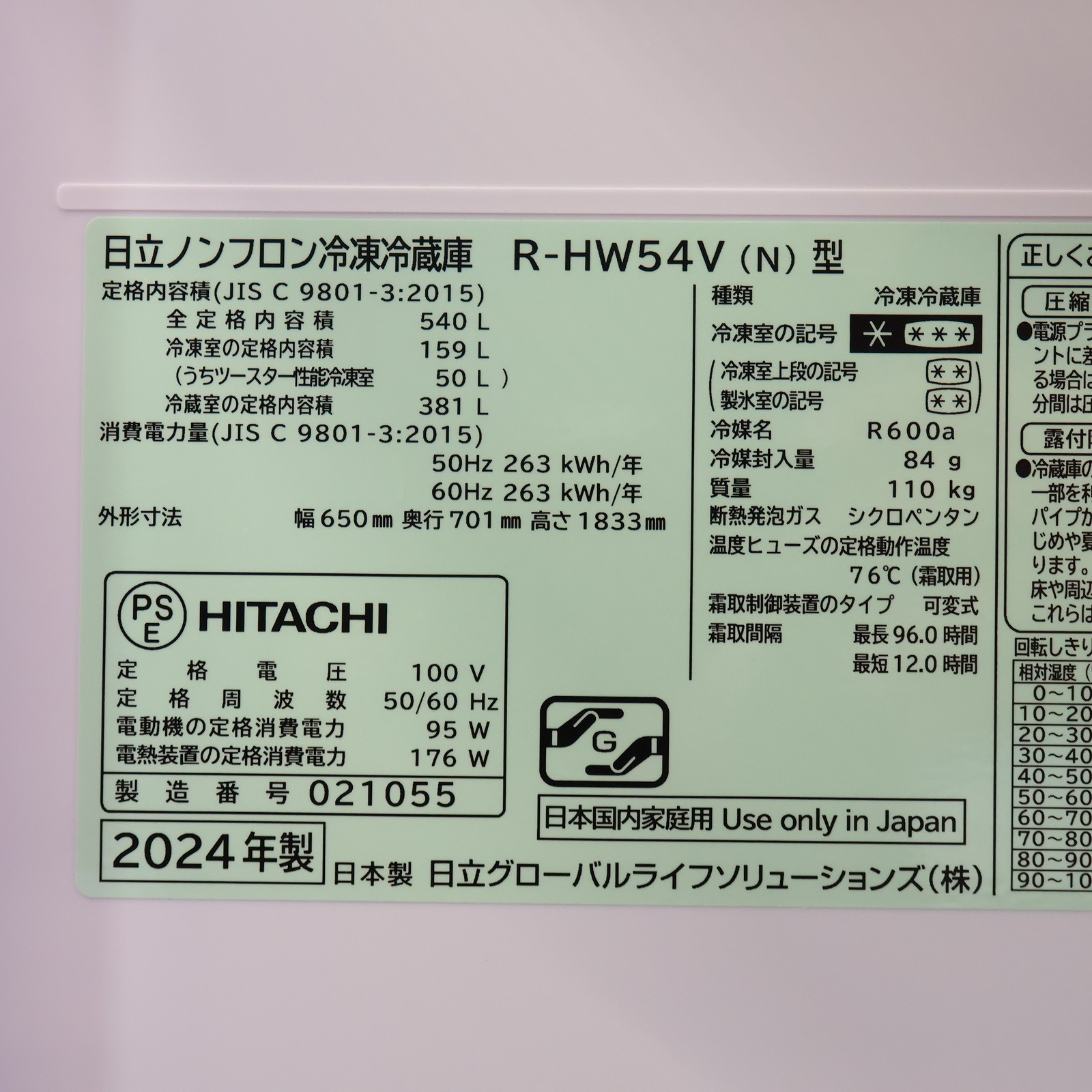 〔中古品〕 冷蔵庫 HWタイプ ライトゴールド R-HW54V-N [幅65cm /540L /6ドア /観音開きタイプ]