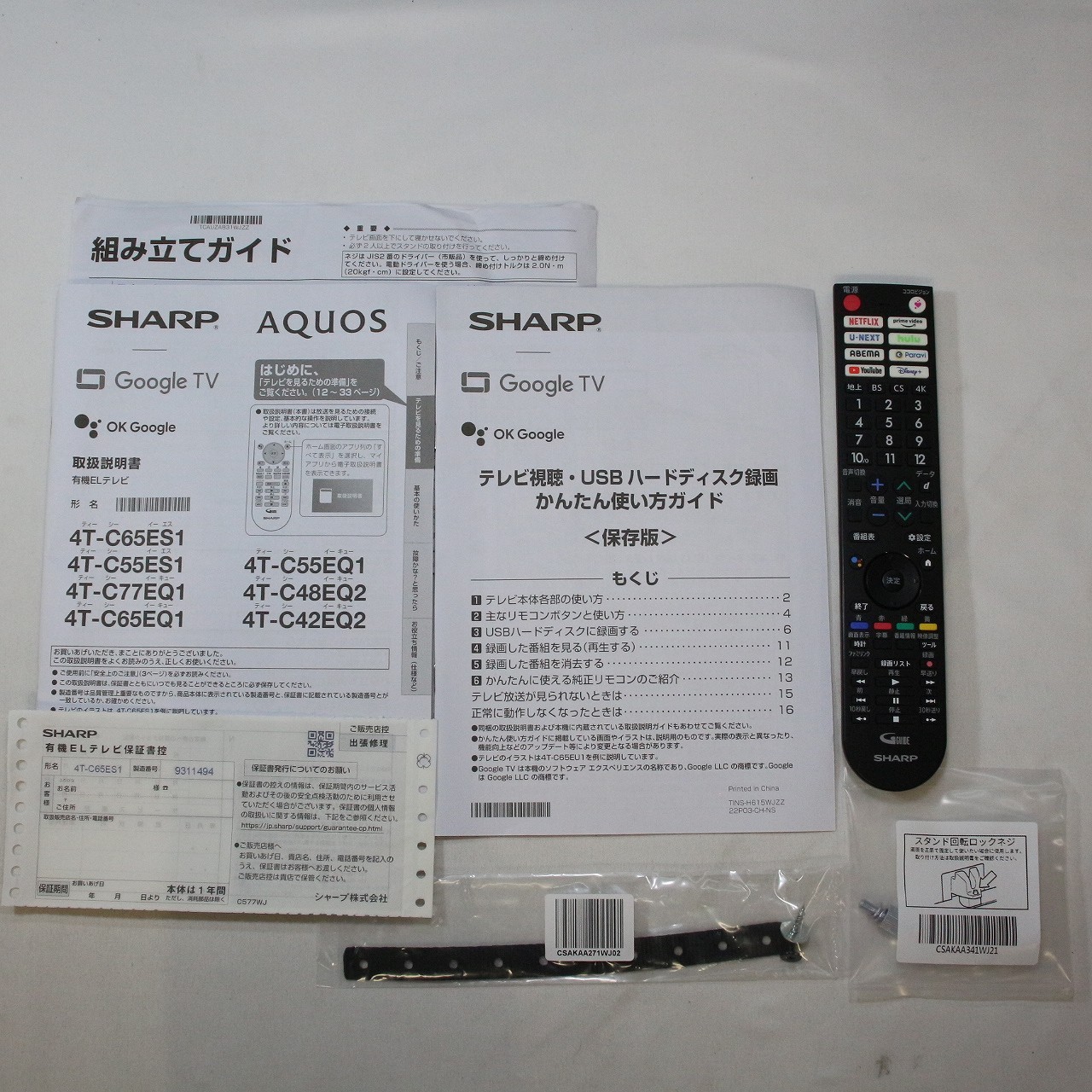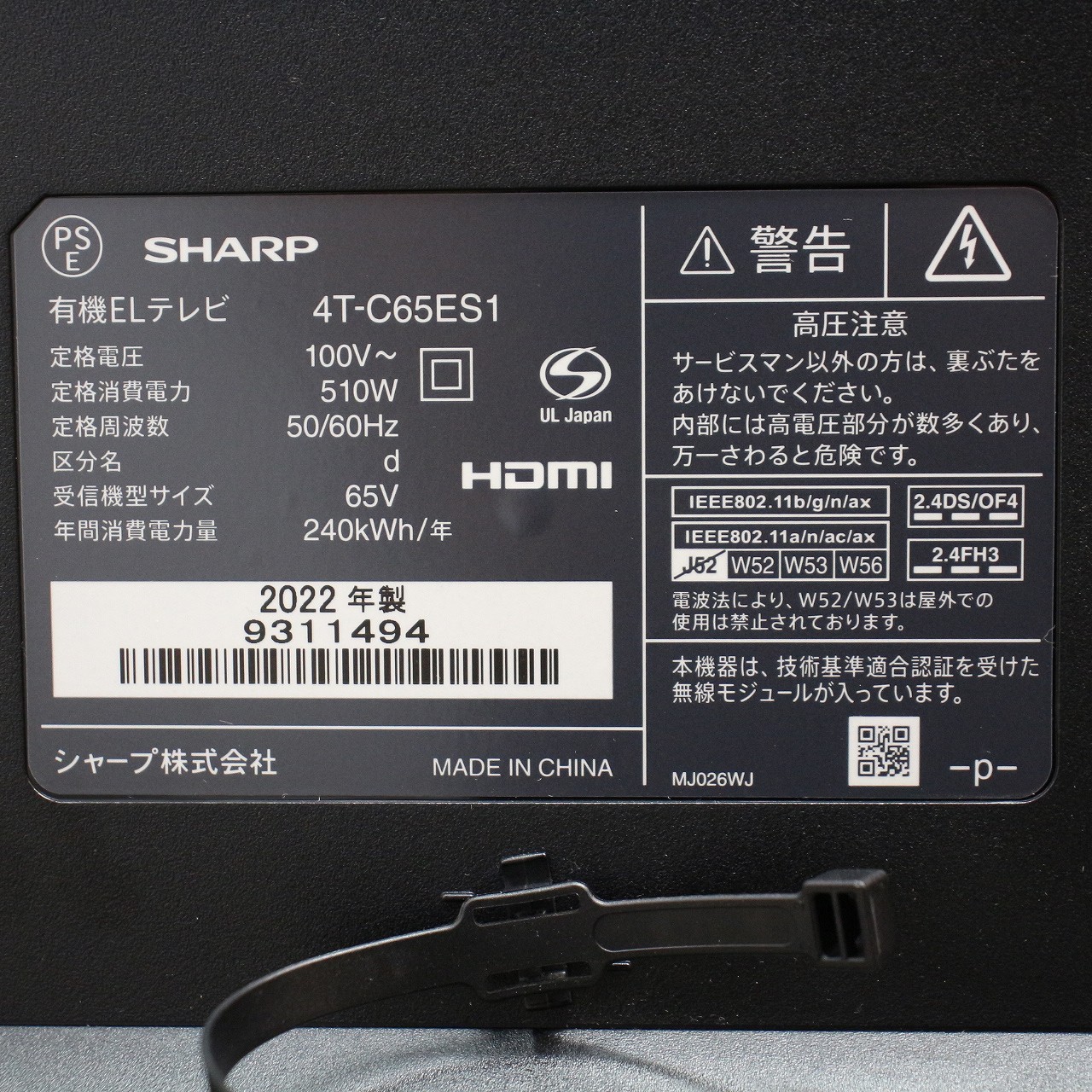 〔展示品〕 有機ELテレビ AQUOS(アクオス) 4T-C65ES1 [65V型 /Bluetooth対応 /4K対応 /BS・CS 4Kチューナー内蔵 /YouTube対応]