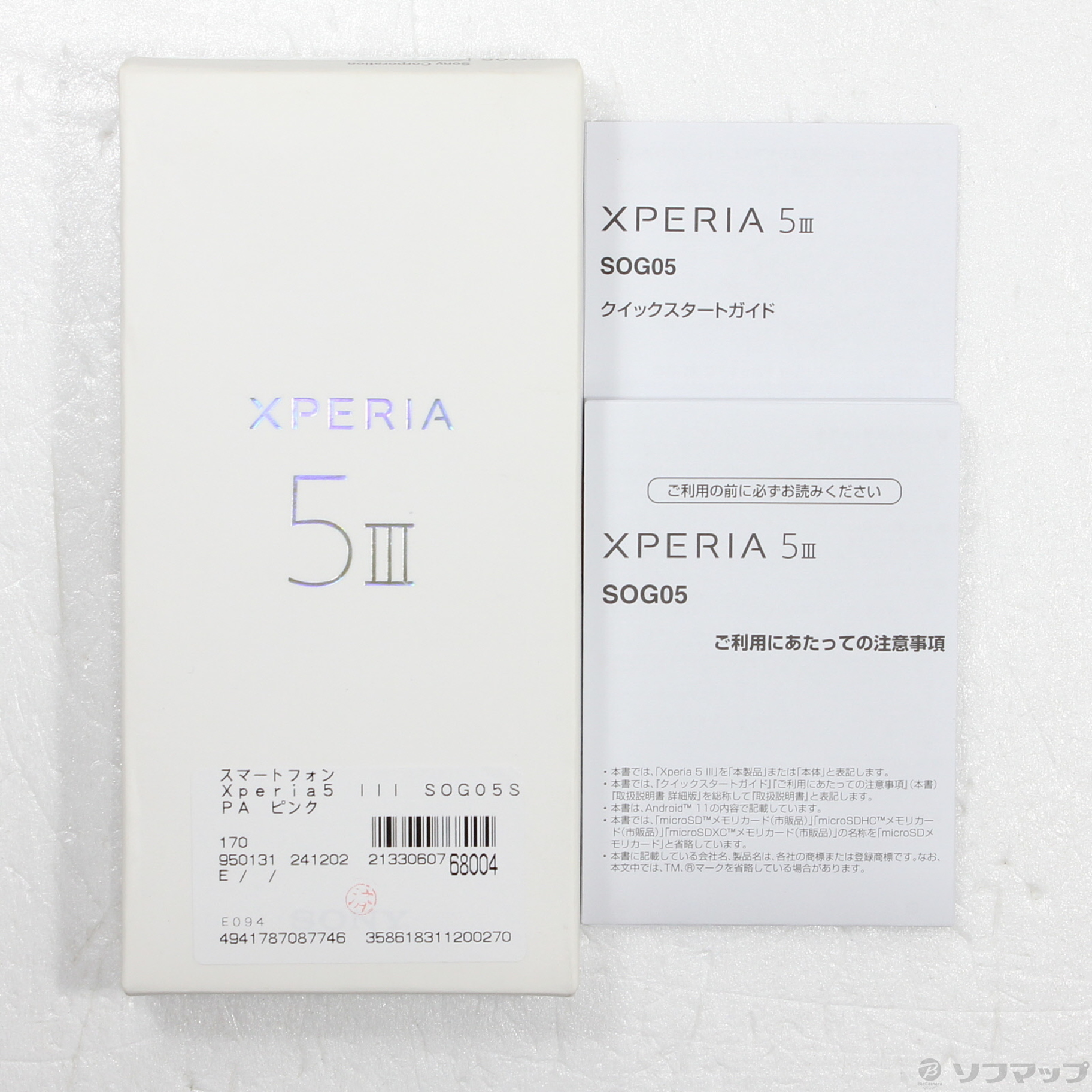 商品名 〔中古品〕 Xperia 5 III 128GB ピンク SOG05 au SIMフリー [6.1インチ有機EL/Snapdragon 888 5G]