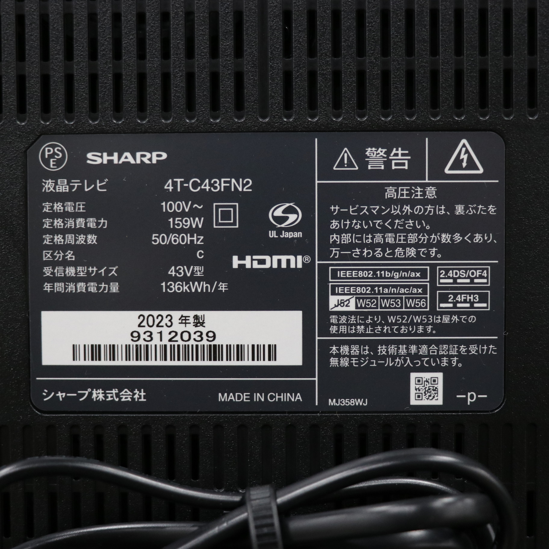 〔展示品〕 液晶テレビ AQUOS(アクオス) 4T-C43FN2 [43V型 /Bluetooth対応 /4K対応 /BS・CS 4Kチューナー内蔵 /YouTube対応]