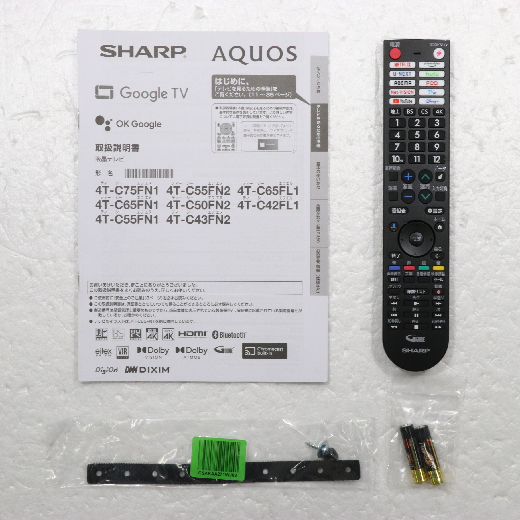 中古商品ランクについて 付属品・商品状態について 〔付属品〕説明書、かんたん使い方ガイド、リモコン、単4形乾電池×2、スタンドベース、スタンド取付金具、スタンドカバー、スタンド組立・取付用ネジ×8、スタンド回転ロックネジ、転倒防止ベルト、転倒防止ベルト取付用ネジ(黒)×1、転倒防止ベルト取付用ネジ(シルバー)×1