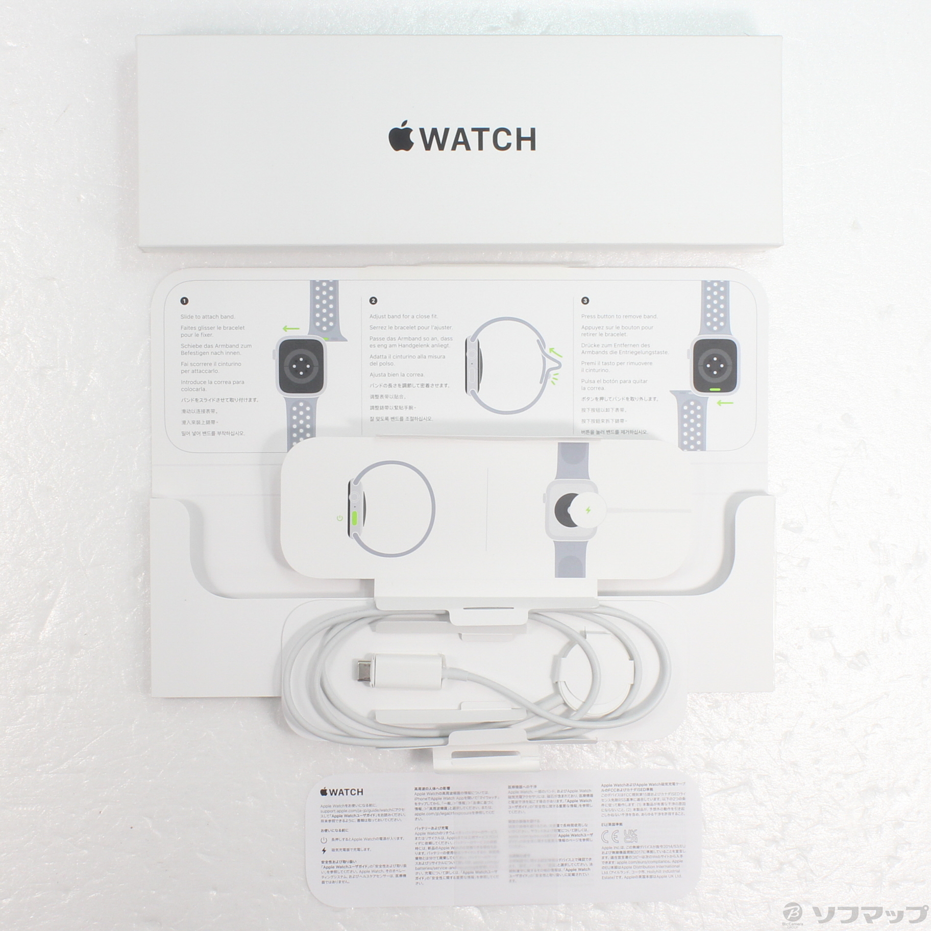 中古商品ランクについて 付属品・商品状態について 〔付属品〕外箱、説明書、磁気充電ケーブル、ミッドナイトスカイNikeスポーツバンド M/L