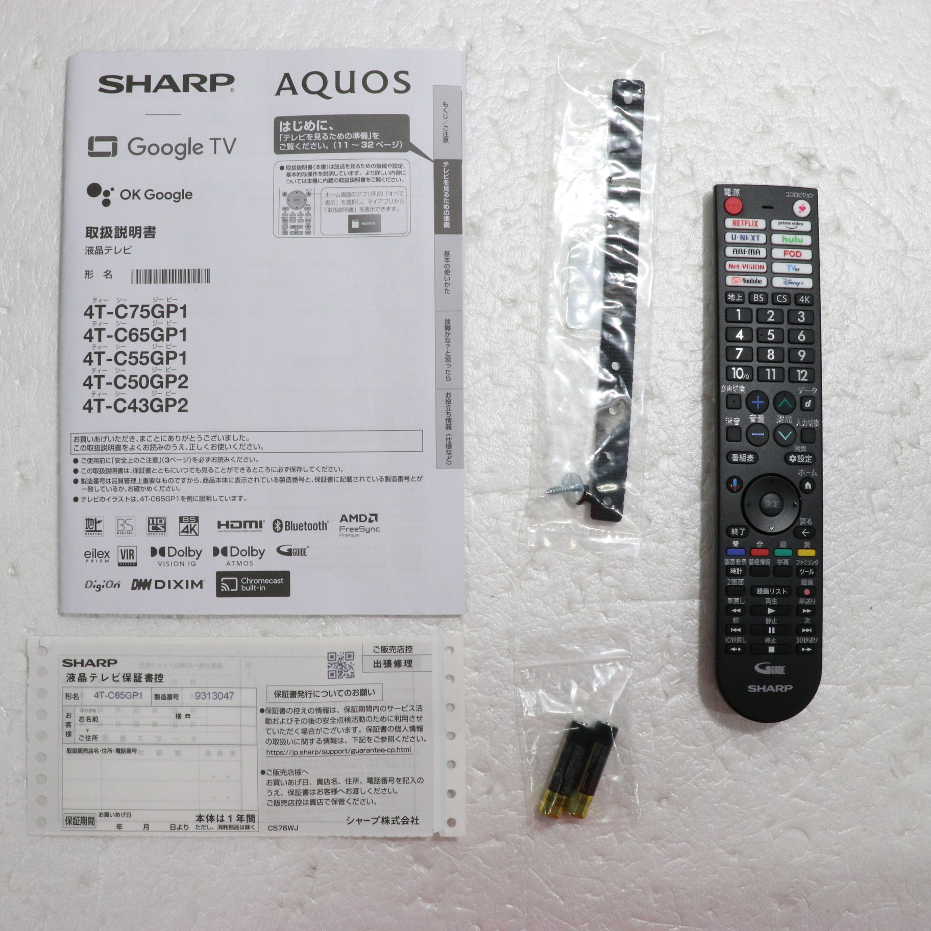 中古商品ランクについて 付属品・商品状態について 〔付属品〕取扱説明書、かんたん使い方ガイド、リモコン、リモコン用乾電池×2、スタンド取付金具、スタンドカバー、スタンドベース、スタンド組立用ネジ×4、スタンド取付用ネジ×4、転倒防止ベルト、転倒防止ベルトテレビ取付用ネジ、転倒防止ベルトテレビ台固定用ネジ、スタンド回転ロックネジ