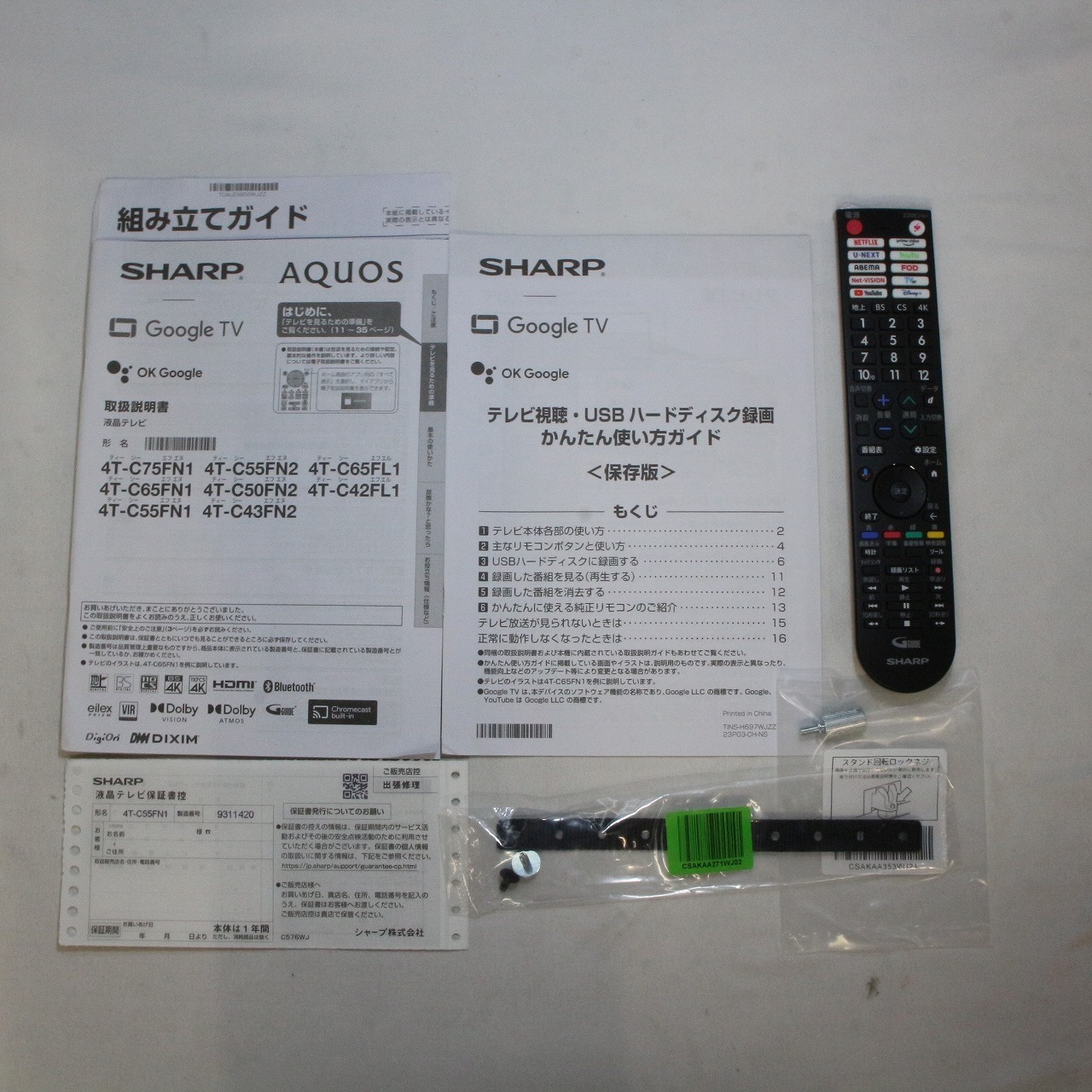 〔展示品〕 液晶テレビ AQUOS(アクオス) 4T-C55FN1 [55V型 /Bluetooth対応 /4K対応 /BS・CS 4Kチューナー内蔵 /YouTube対応]