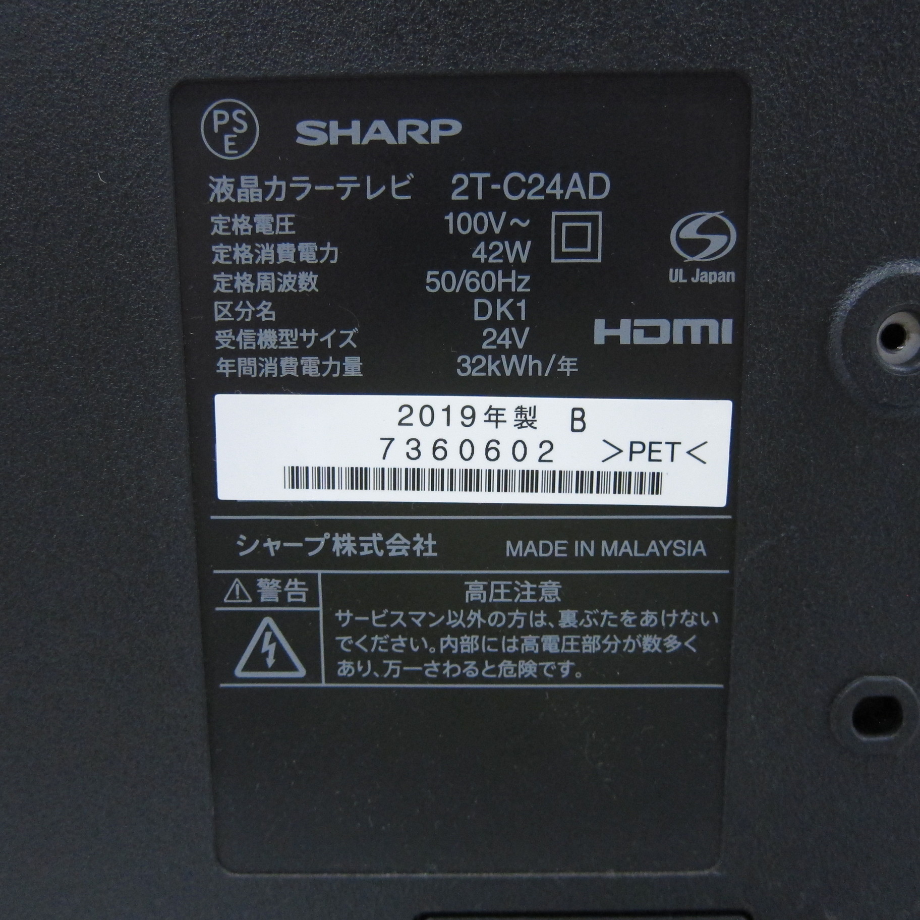 〔中古品〕 液晶テレビ AQUOS(アクオス) ブラック 2T-C24ADB [24V型 /ハイビジョン]