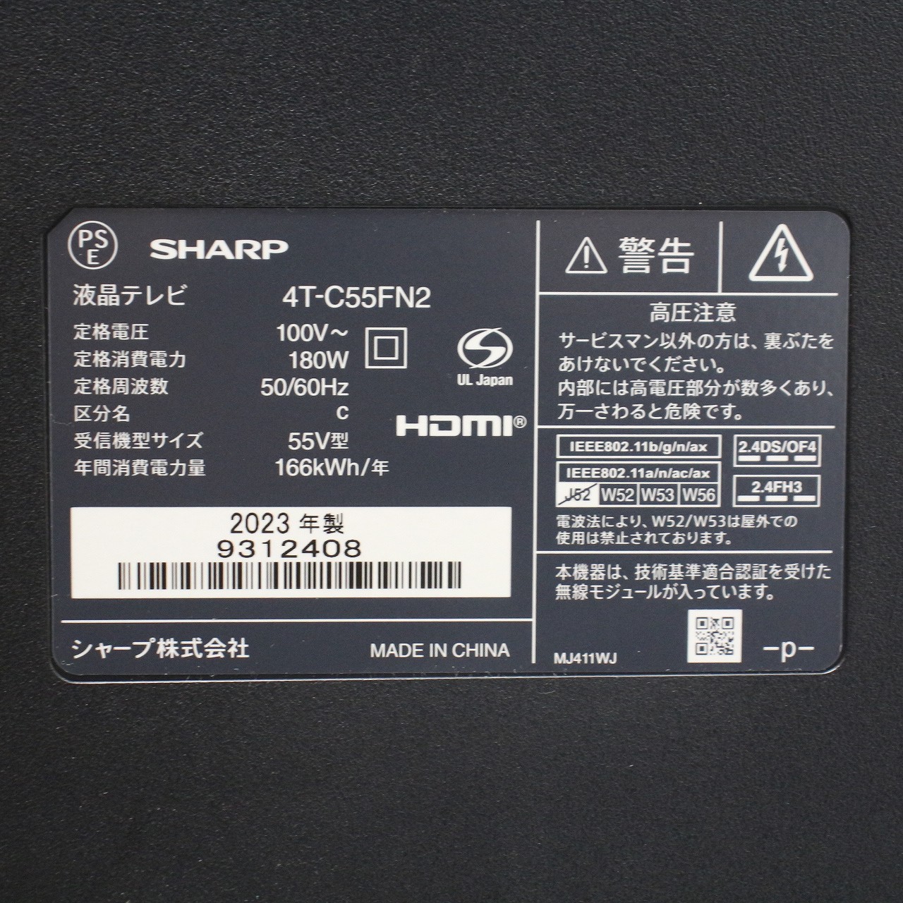 〔展示品〕 液晶テレビ AQUOS(アクオス) 4T-C55FN2 [55V型 /Bluetooth対応 /4K対応 /BS・CS 4Kチューナー内蔵 /YouTube対応]