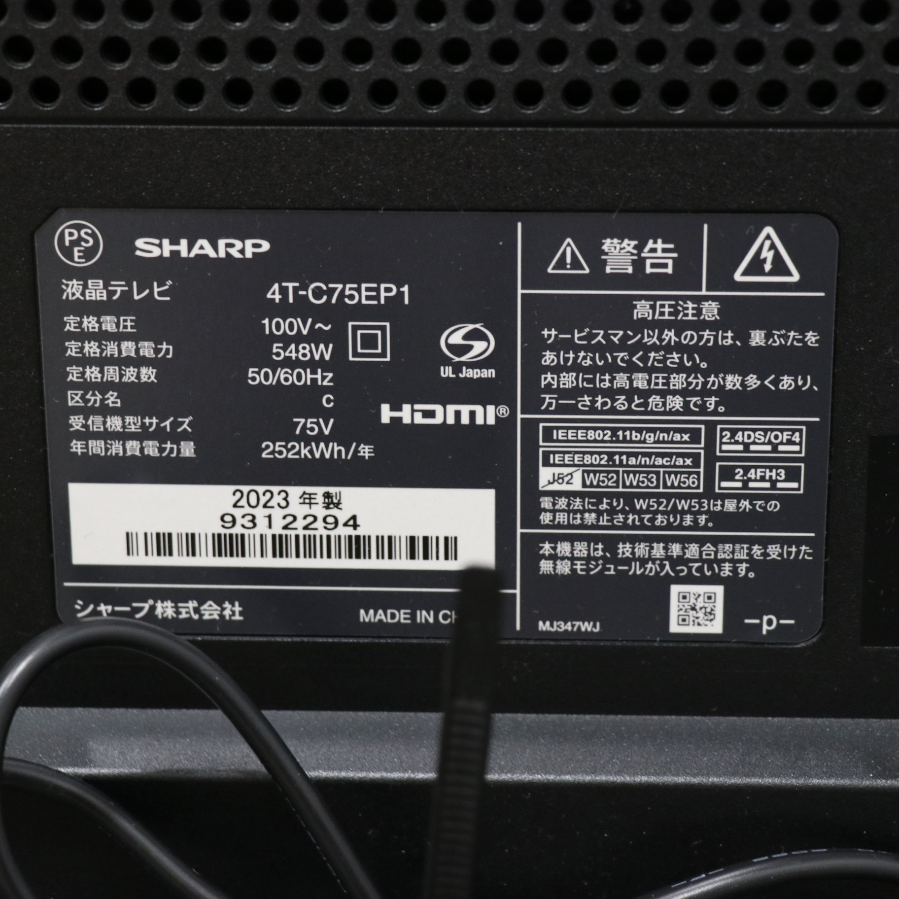 〔展示品〕 液晶テレビ AQUOS 4T-C75EP1 [75V型 /Bluetooth対応 /4K対応 /BS・CS 4Kチューナー内蔵 /YouTube対応]