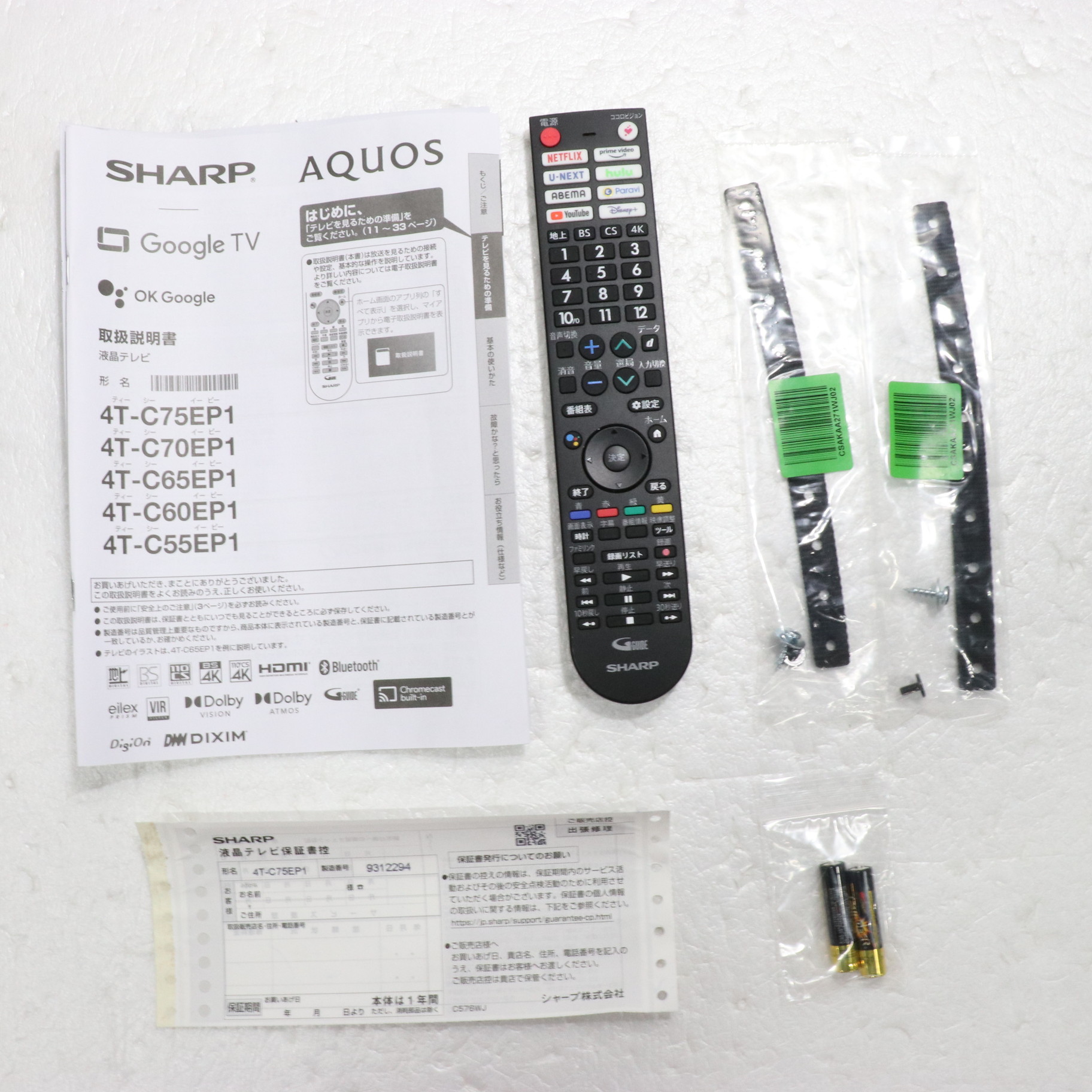 中古商品ランクについて 付属品・商品状態について 〔付属品〕説明書、かんたんガイド、リモコン、リモコン用単4形乾電池×2、スタンド取付金具×2、スタンドベース、スタンド組み立て用ネジ×6 M5(長さ 14.5mm)、スタンド取付用ネジ×4 M5(長さ 14.5mm)、転倒防止ベルト×2、転倒防止ベルトテレビ取付用ネジ(黒)×2 M4(長さ 8mm)、転倒防止ベルトテレビ台固定用ネジ(シルバー)×2 M4(長さ 16mm)