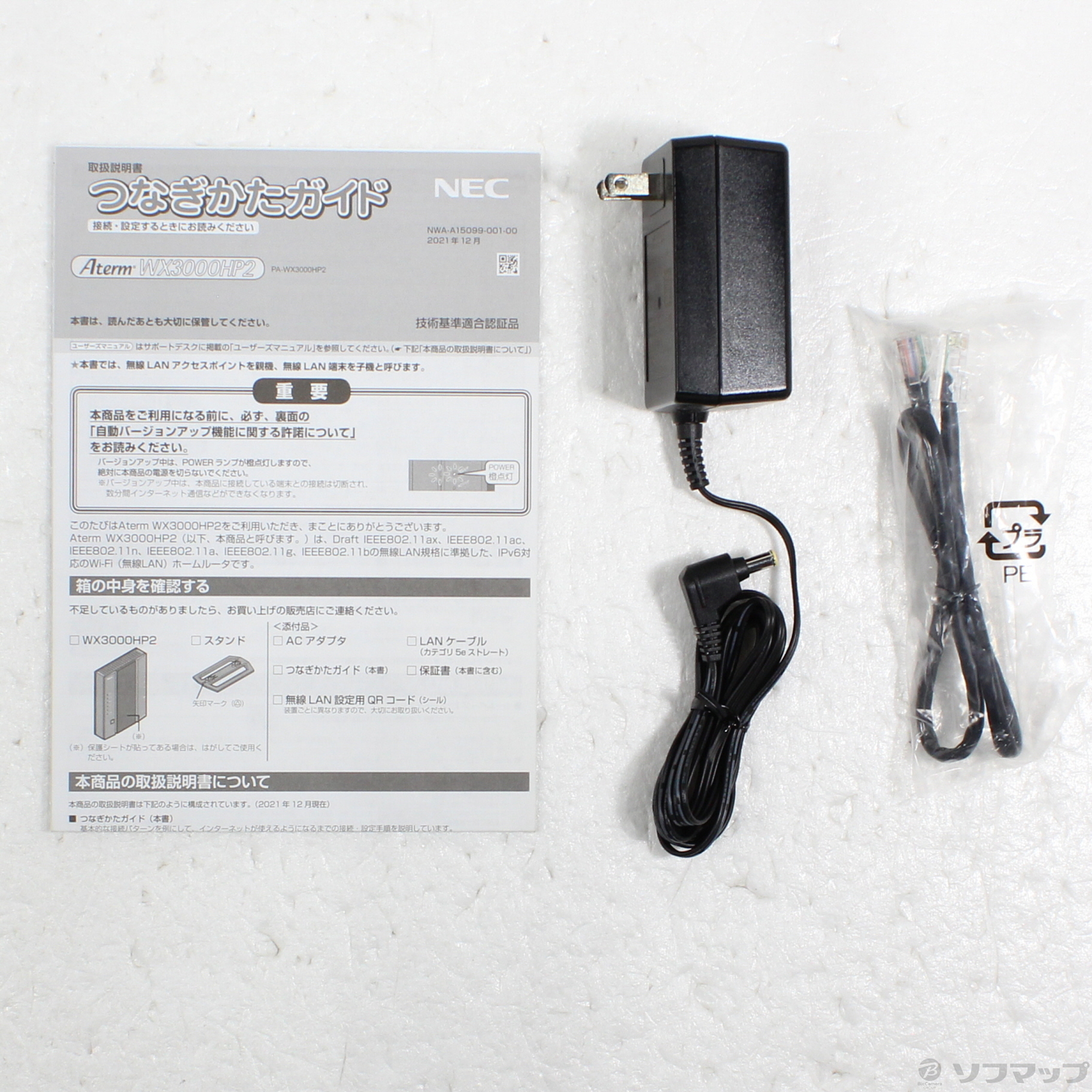 〔付属品〕つなぎかたガイド、無線LAN設定用QRコード、スタンド、ACアダプタ、LANケーブル