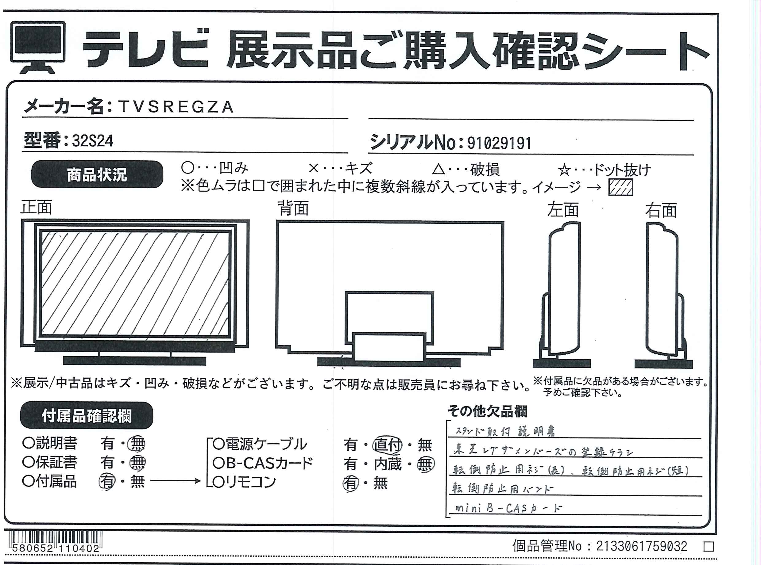 中古商品ランクについて 付属品・商品状態について 〔付属品〕スタンド×2、スタンド用ネジ×2、リモコン(CT-90486)、単四形乾電池×2