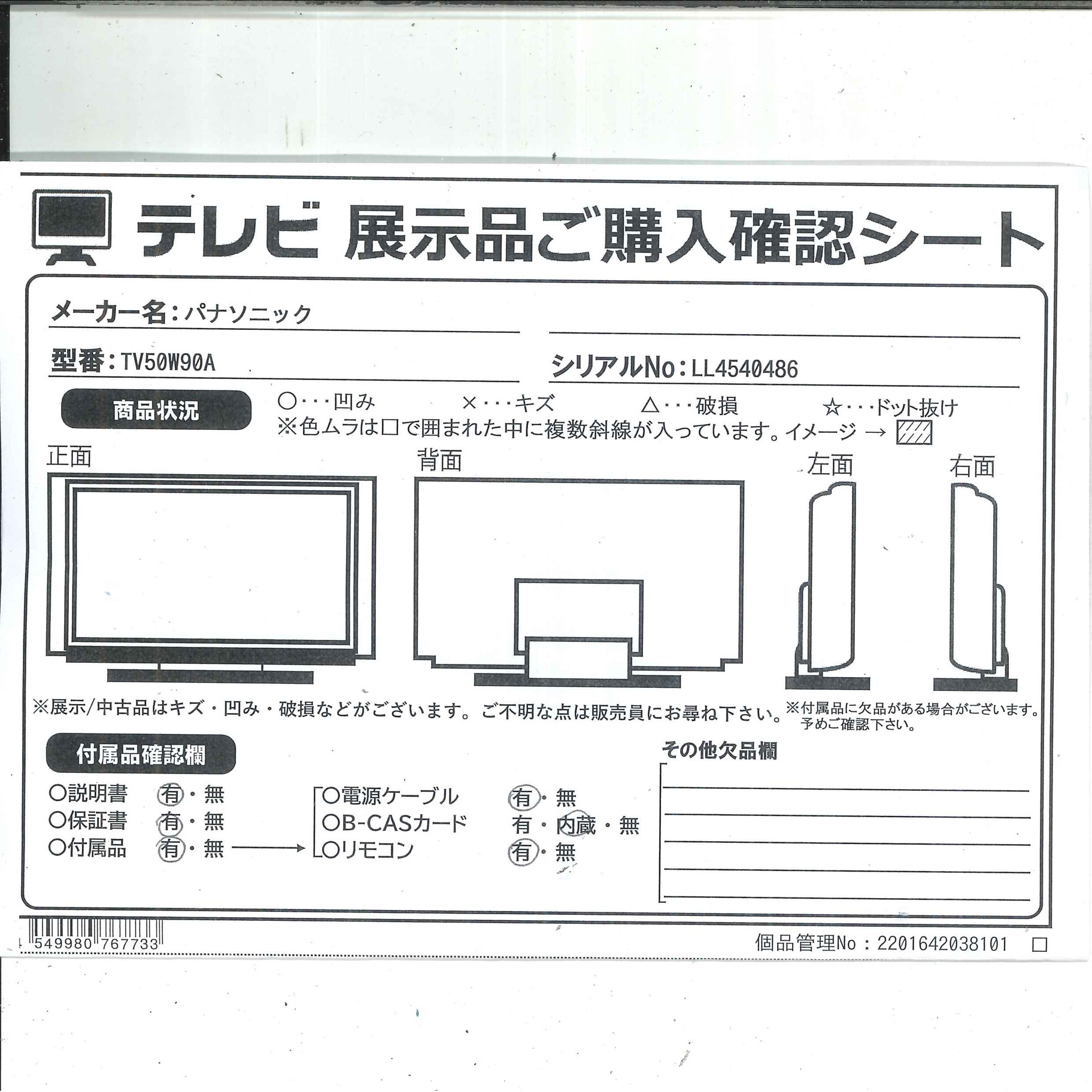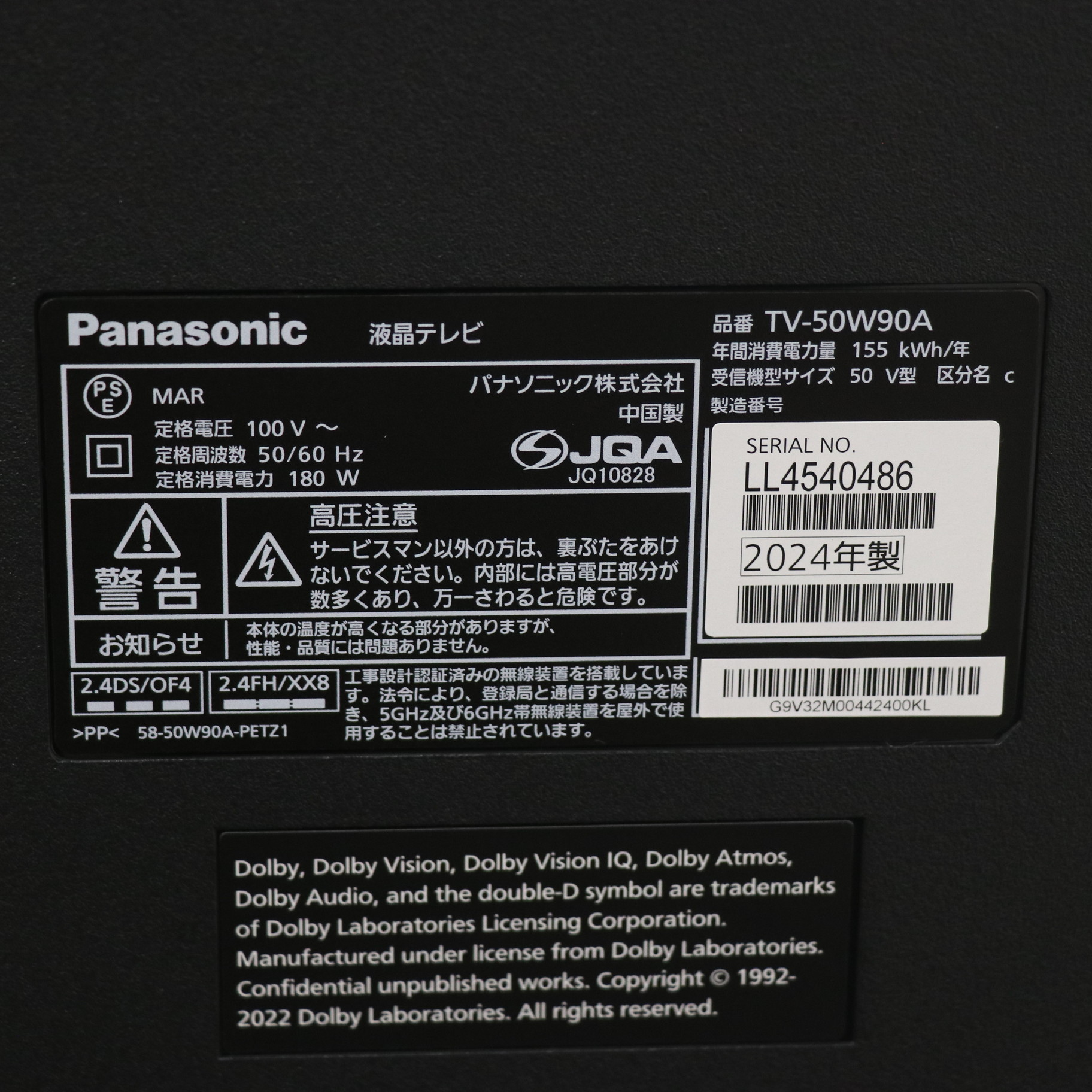 〔展示品〕 液晶テレビ VIERA(ビエラ) TV-50W90A [50V型 /Bluetooth対応 /4K対応 /YouTube対応]