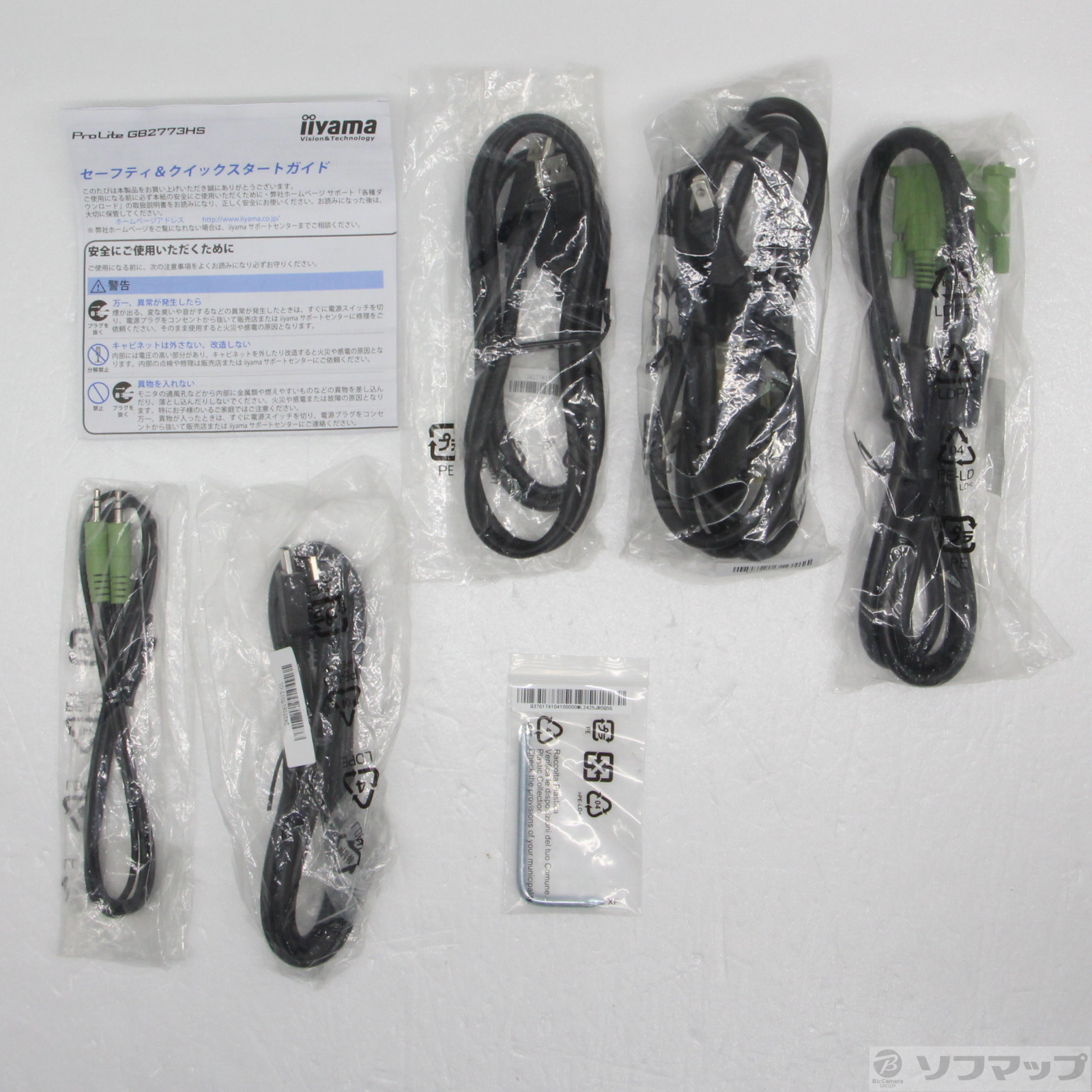 付属品:DVIケーブル(デュアルリンク)(1.5m)、HDMIケーブル(1.5m)、DisplayPortケーブル(1.5m)、オーディオケーブル(1.5m)、電源コード(1.8m)、スタンドベース、スタンド固定用ネジ3個、保証書(クイックスタートガイド内)、セーフティー&クイックスタートガイド