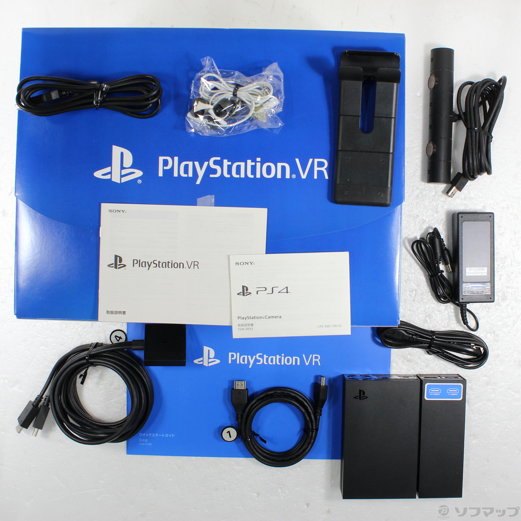中古商品ランクについて 付属品・商品状態について 〔付属品〕箱内箱、説明書、カメラ説明書、クイックスタートガイド、ACアダプタ、PSCamera、ステレオヘッドフォン、プロセッサーユニット、カメラスタンド、イヤーピース、HDMIケーブル、USBケーブル、電源コード、VRヘッドセット接続ケーブル
