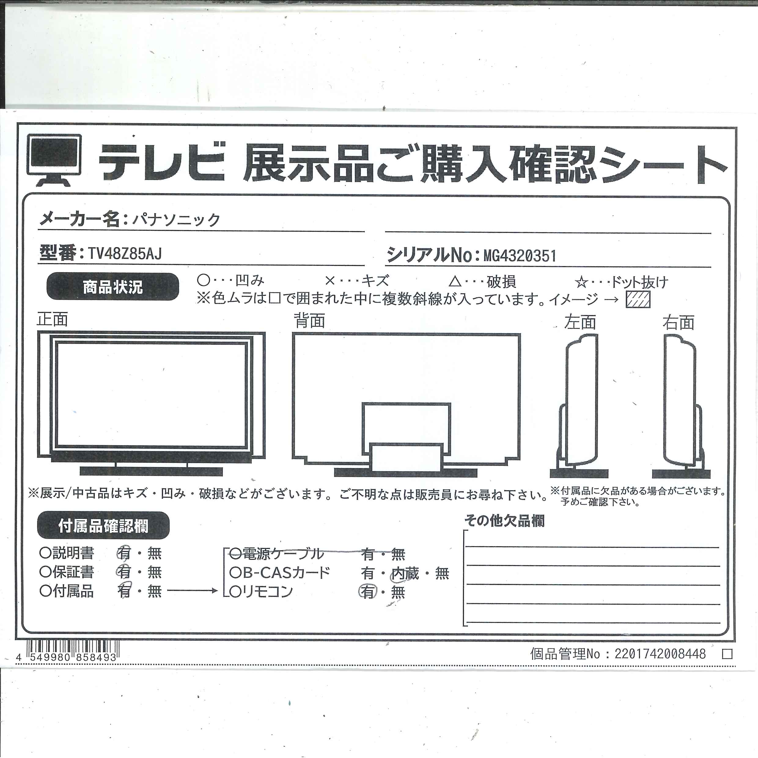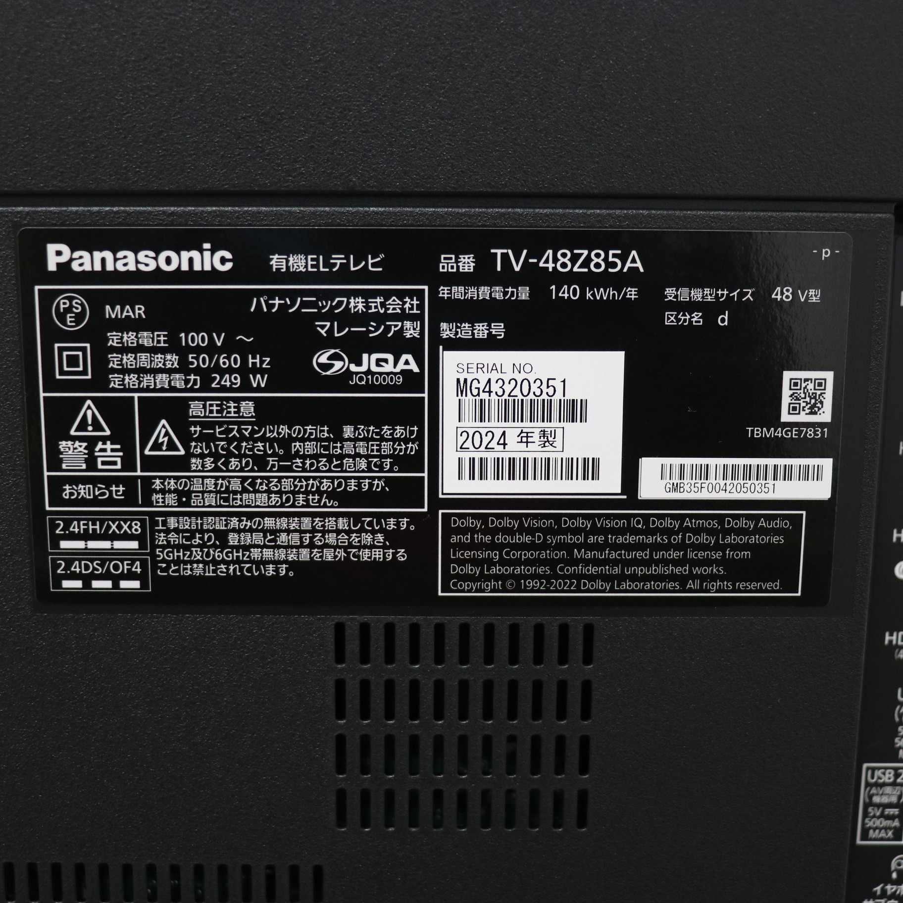 〔展示品〕 有機ELテレビ VIERA(ビエラ) TV-48Z85AJ [48V型 /Bluetooth対応 /4K対応 /BS・CS 4Kチューナー内蔵 /YouTube対応]