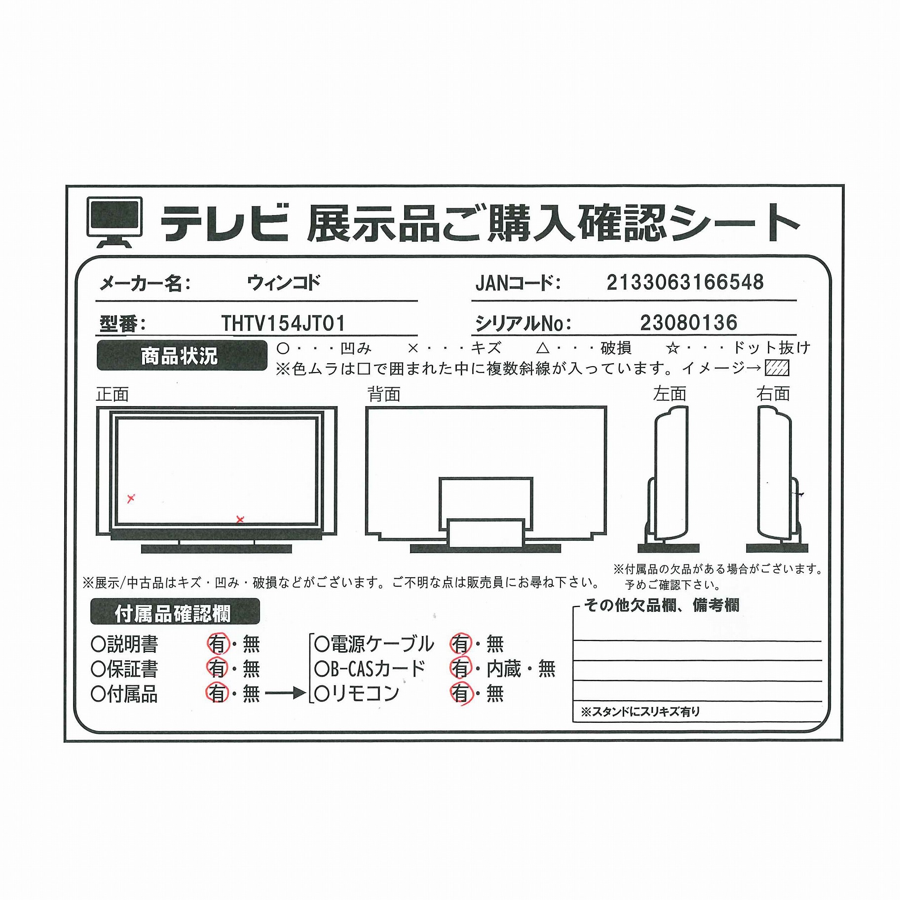 中古商品ランクについて 付属品・商品状態について 〔付属品〕説明書、リモコン、miniB-CASカード、ACアダプター