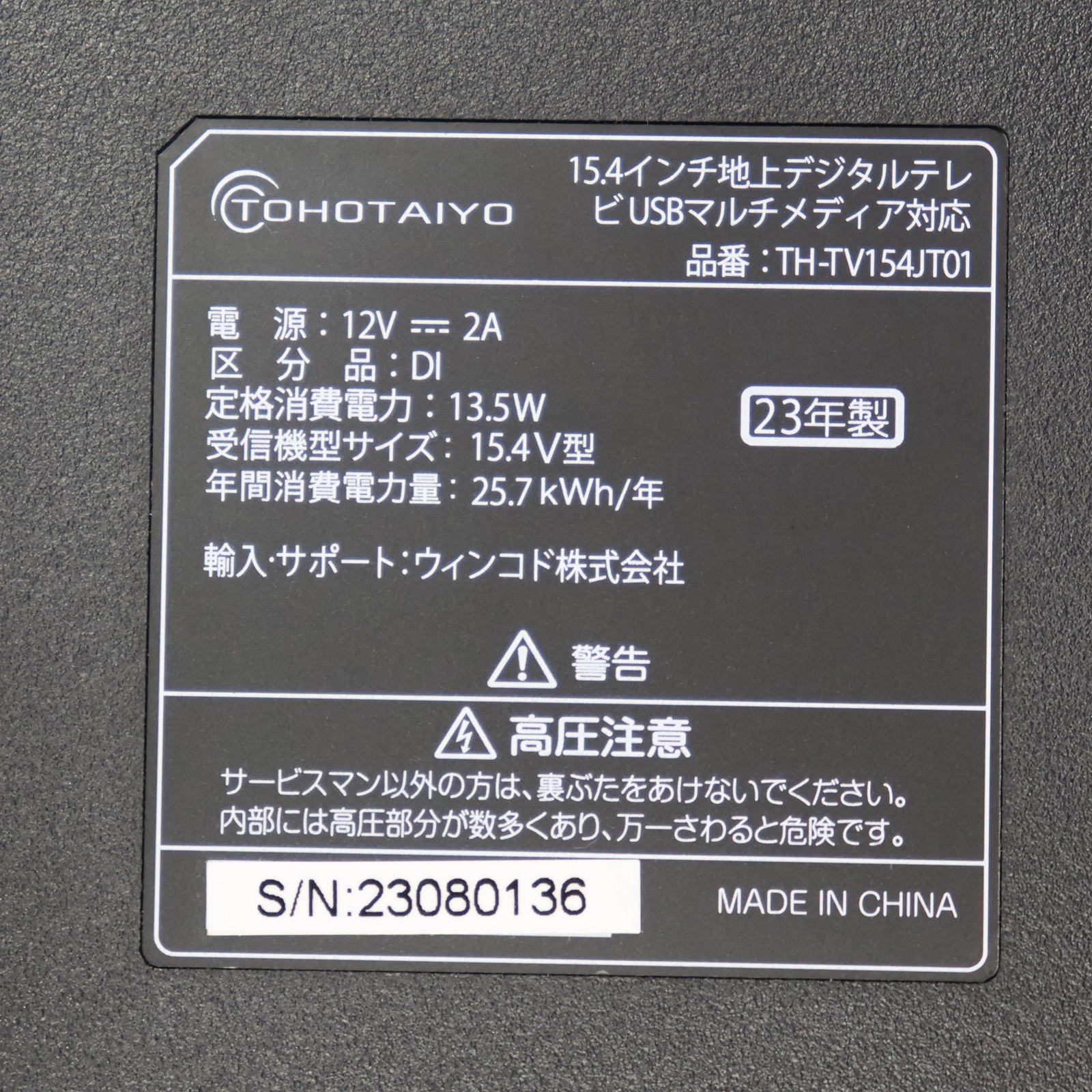 〔展示品〕 液晶テレビ TH-TV154JT01 [15V型/ハイビジョン]