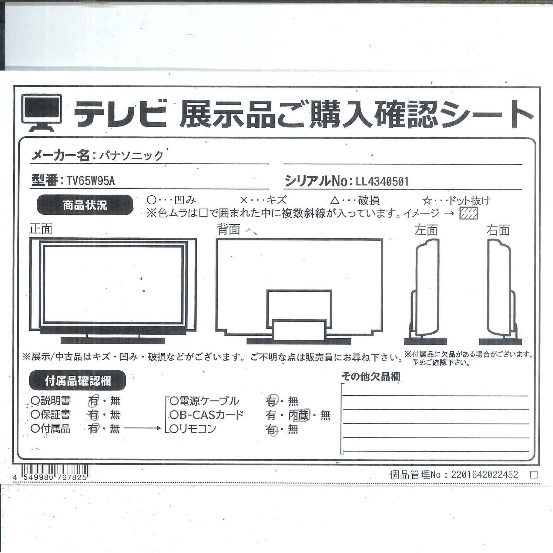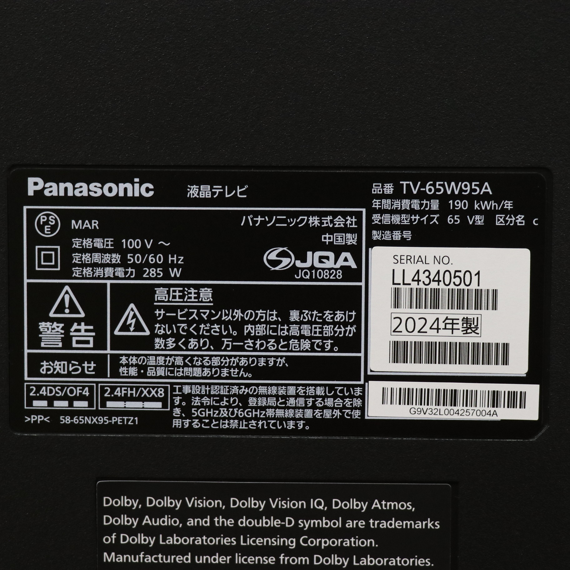 〔展示品〕 液晶テレビ VIERA(ビエラ) TV-65W95A [65V型 /Bluetooth対応 /4K対応 /YouTube対応]