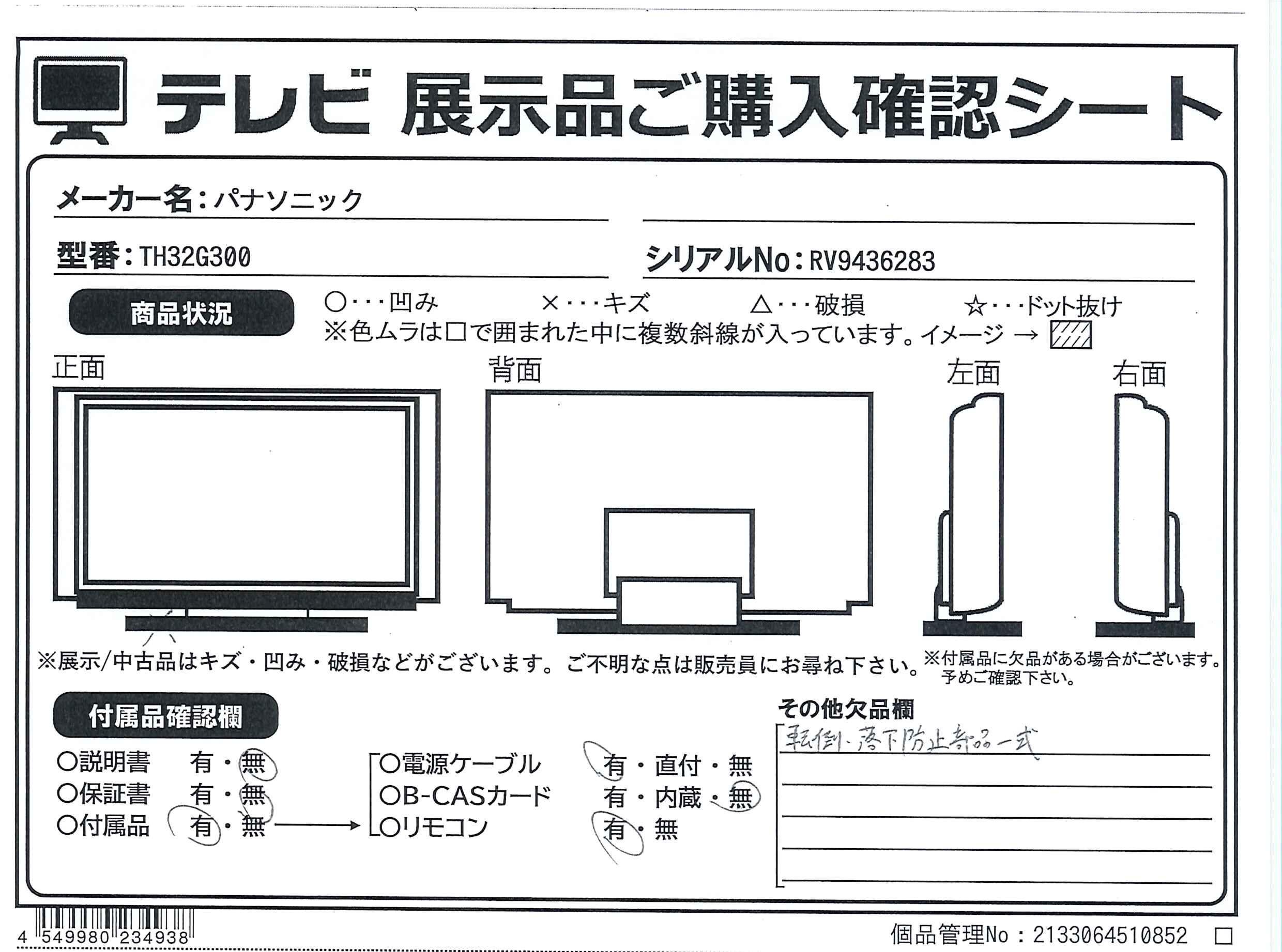〔中古品〕 地上・BS・110度CSデジタルハイビジョン液晶テレビ パナソニック TH-32G300 [32V型 /ハイビジョン]