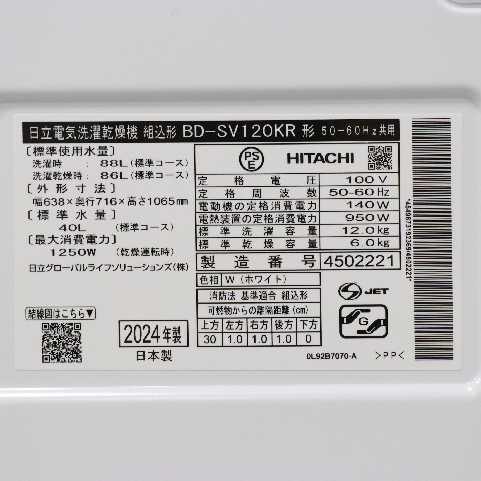 商品名 〔展示品〕 ドラム式洗濯機 ビッグドラム ホワイト BD-SV120KR-W [洗濯12.0kg /乾燥6.0kg /ヒーター乾燥(水冷・除湿タイプ) /右開き]