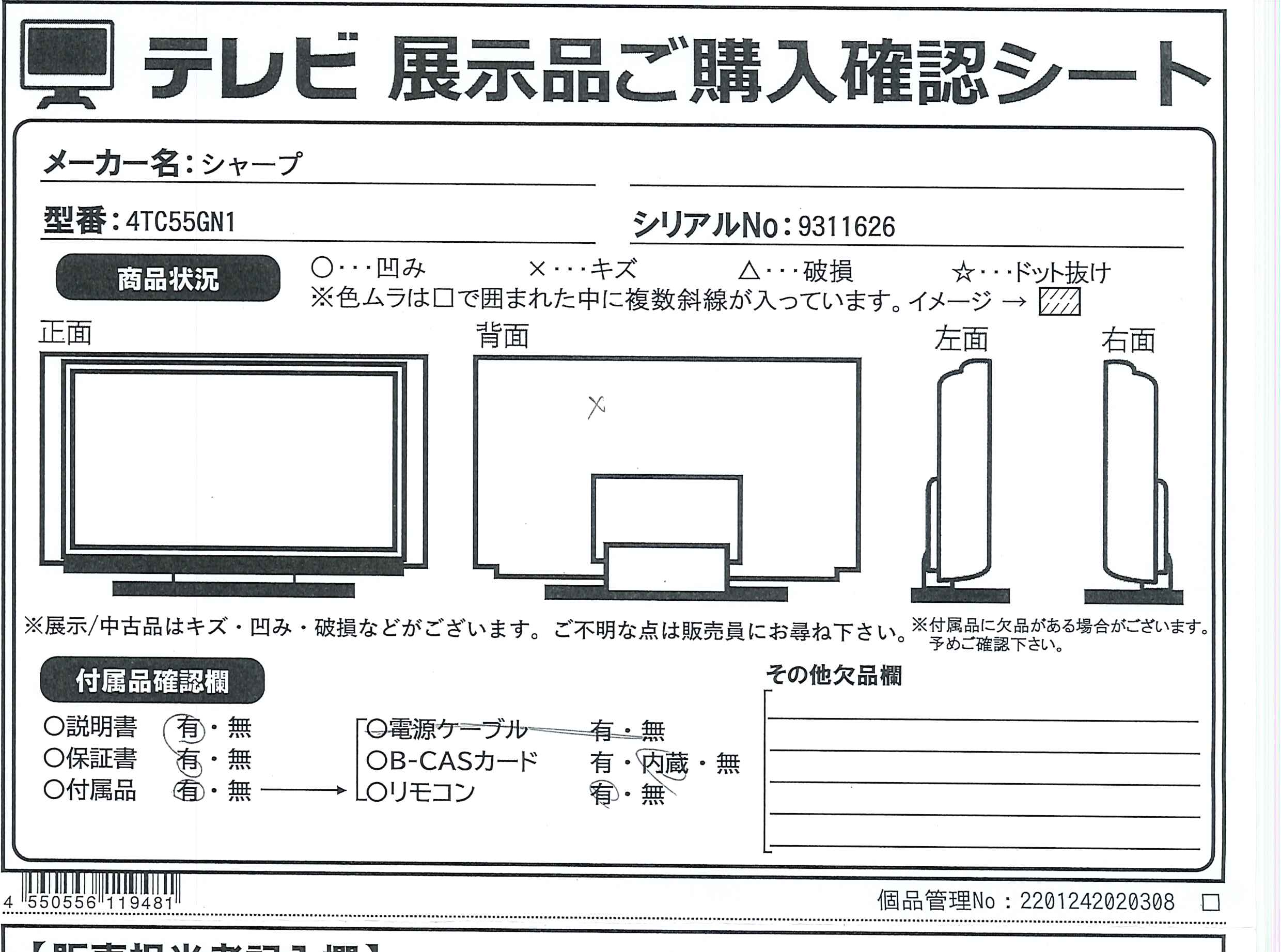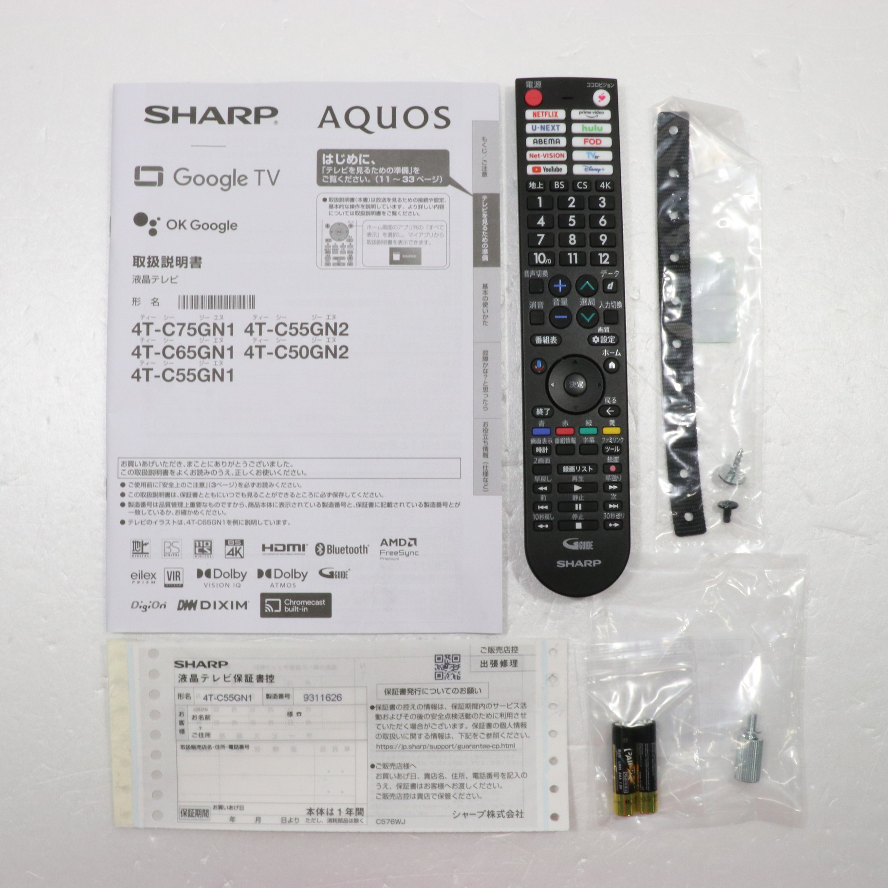 商品名 〔展示品〕 液晶テレビ AQUOS ブラック 4T-C55GN1 [55V型 /Bluetooth対応 /4K対応 /BS・CS 4Kチューナー内蔵 /YouTube対応]