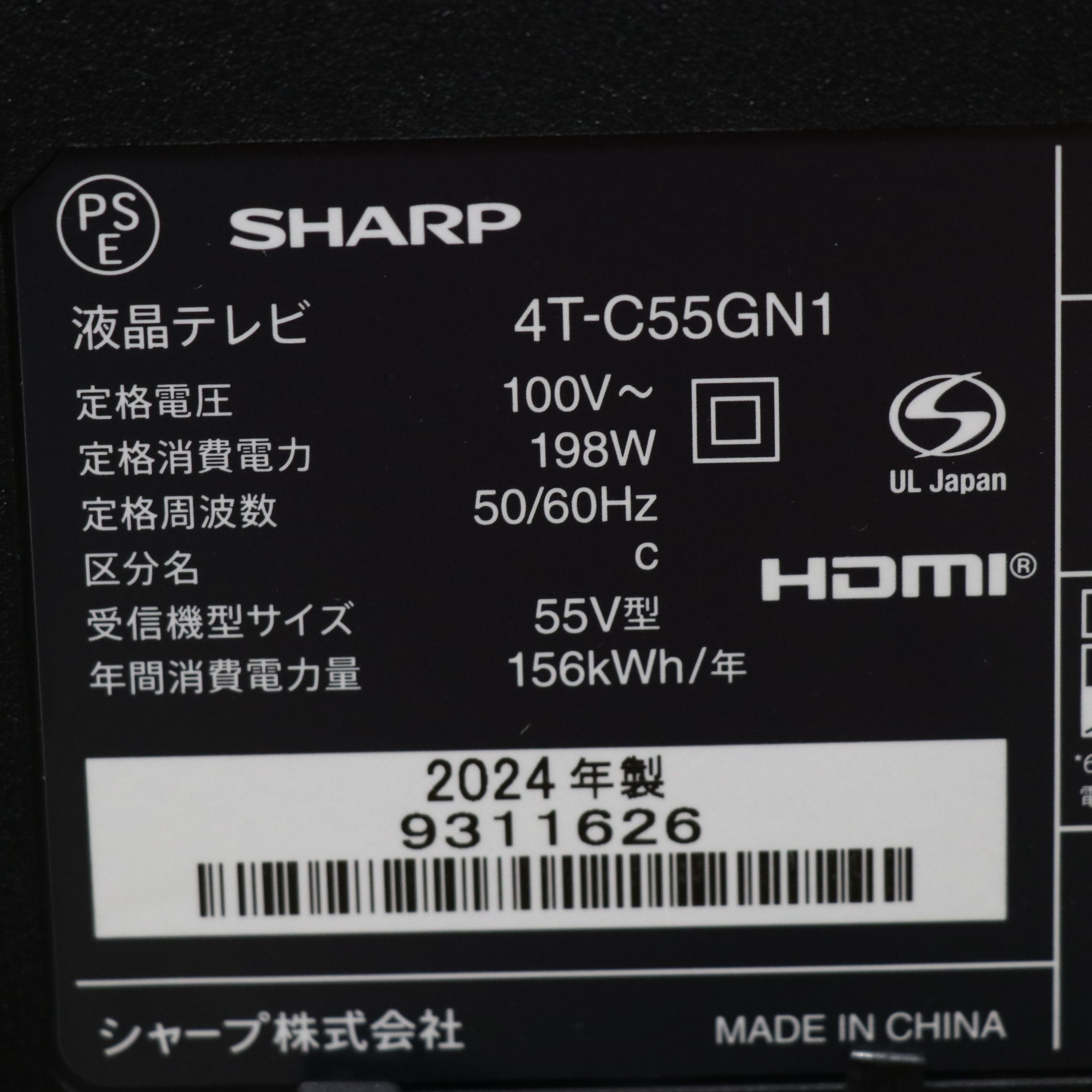 〔展示品〕 液晶テレビ AQUOS ブラック 4T-C55GN1 [55V型 /Bluetooth対応 /4K対応 /BS・CS 4Kチューナー内蔵 /YouTube対応]