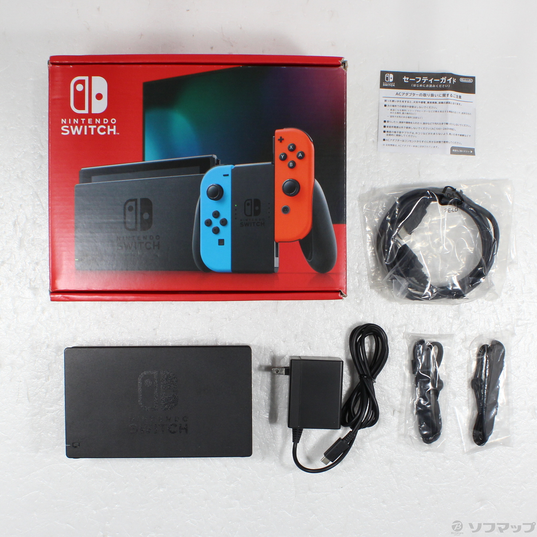 中古商品ランクについて 付属品・商品状態について 〔付属品〕箱、セーフティーガイド、ACアダプター、Joy-Con 右 ネオンレッド、Joy-Con 左 ネオンブルー、Nintendo Switchドック、Joy-Conストラップ 左、Joy-Conストラップ 右、背面スタンド、非純正HDMIケーブル