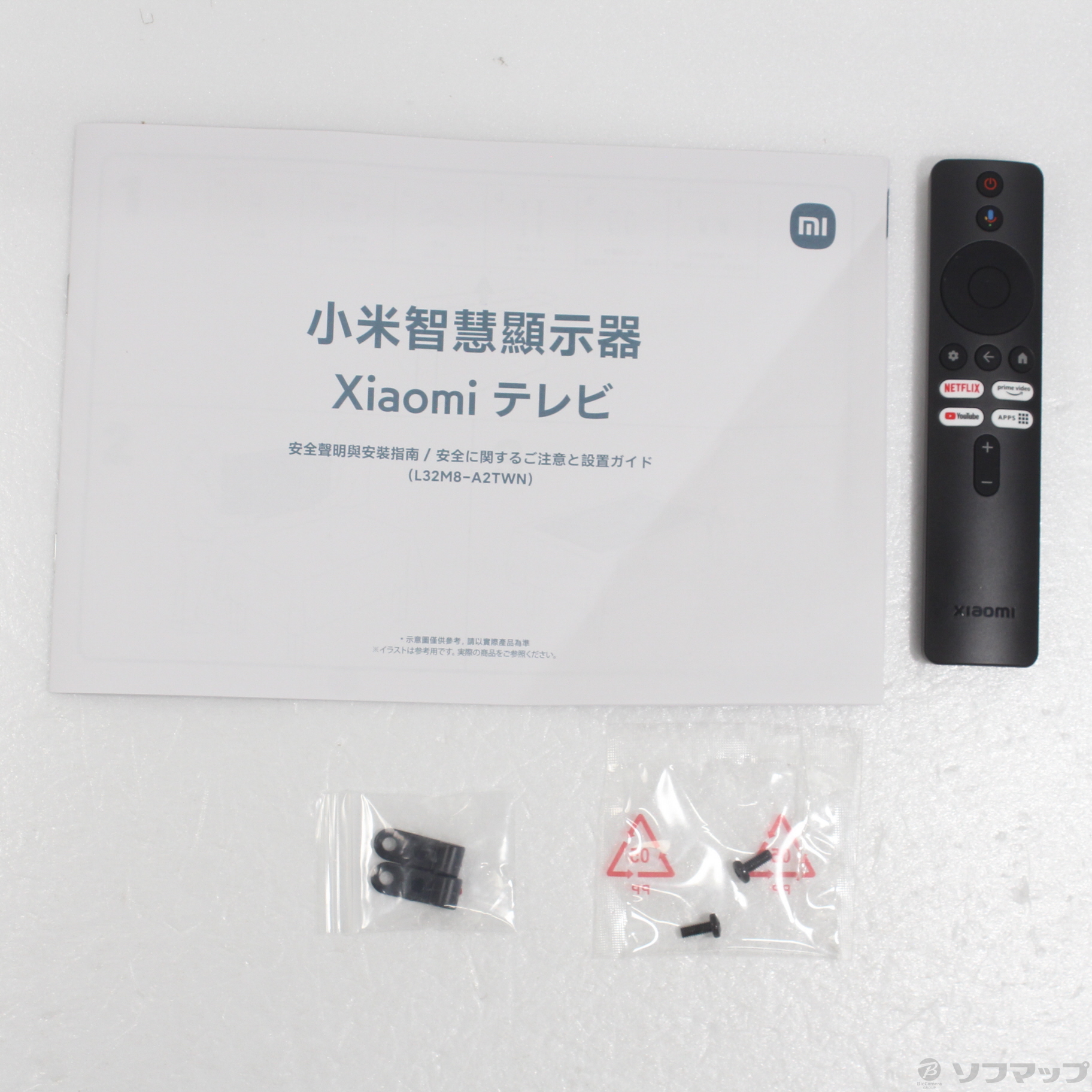 〔付属品〕安全に関するご注意と設置ガイド、リモコン、スタンド(左・右)、スタンド用ネジ×4、壁掛け用スペーサー×2、壁掛け用スペーサー用ネジ×2