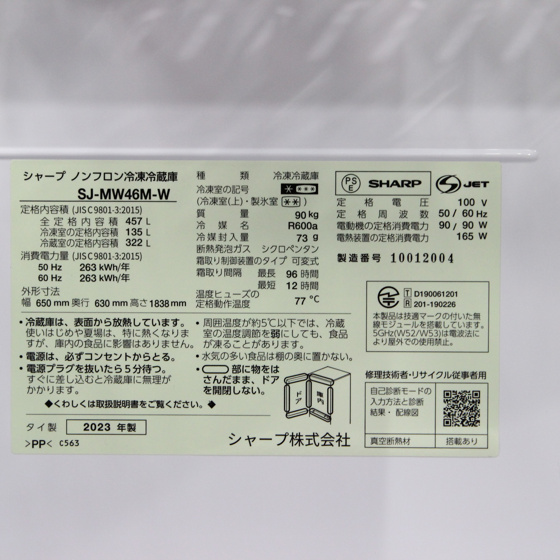 〔展示品〕 冷蔵庫 ラスティックホワイト SJ-MW46M-W [幅65cm /457L /5ドア /左右開きタイプ /2024年]