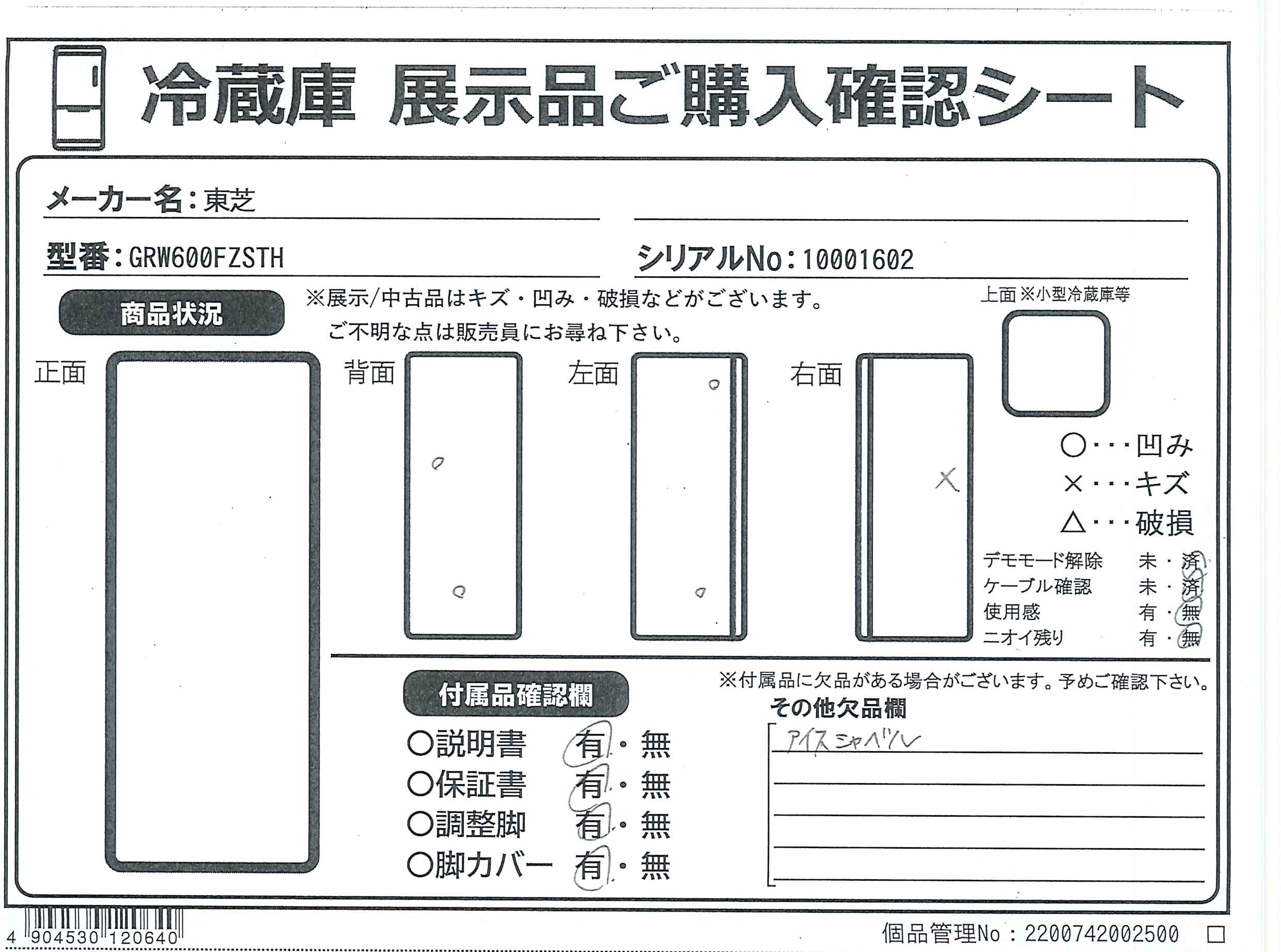 ※ご購入の際は、設置・搬入スペースをご確認頂きますようお願い致します。