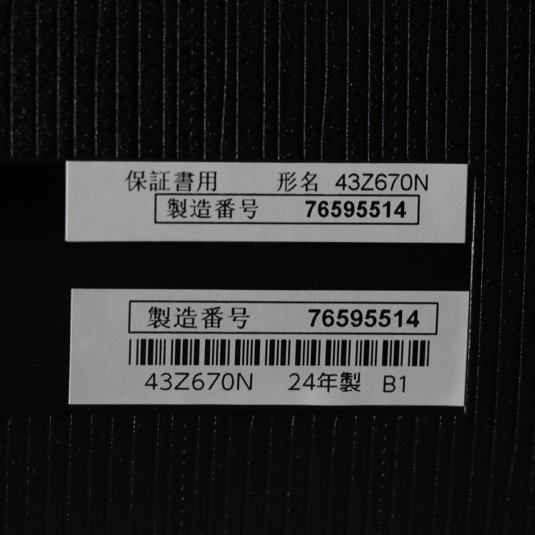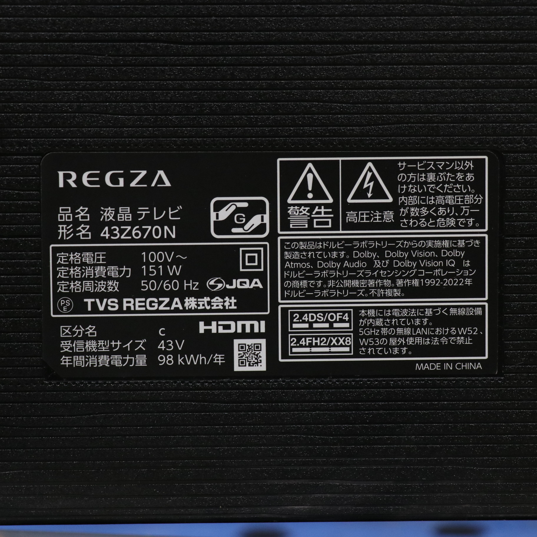 〔展示品〕 液晶テレビ REGZA(レグザ) 43Z670N [43V型 /Bluetooth対応 /4K対応 /BS・CS 4Kチューナー内蔵 /YouTube対応]
