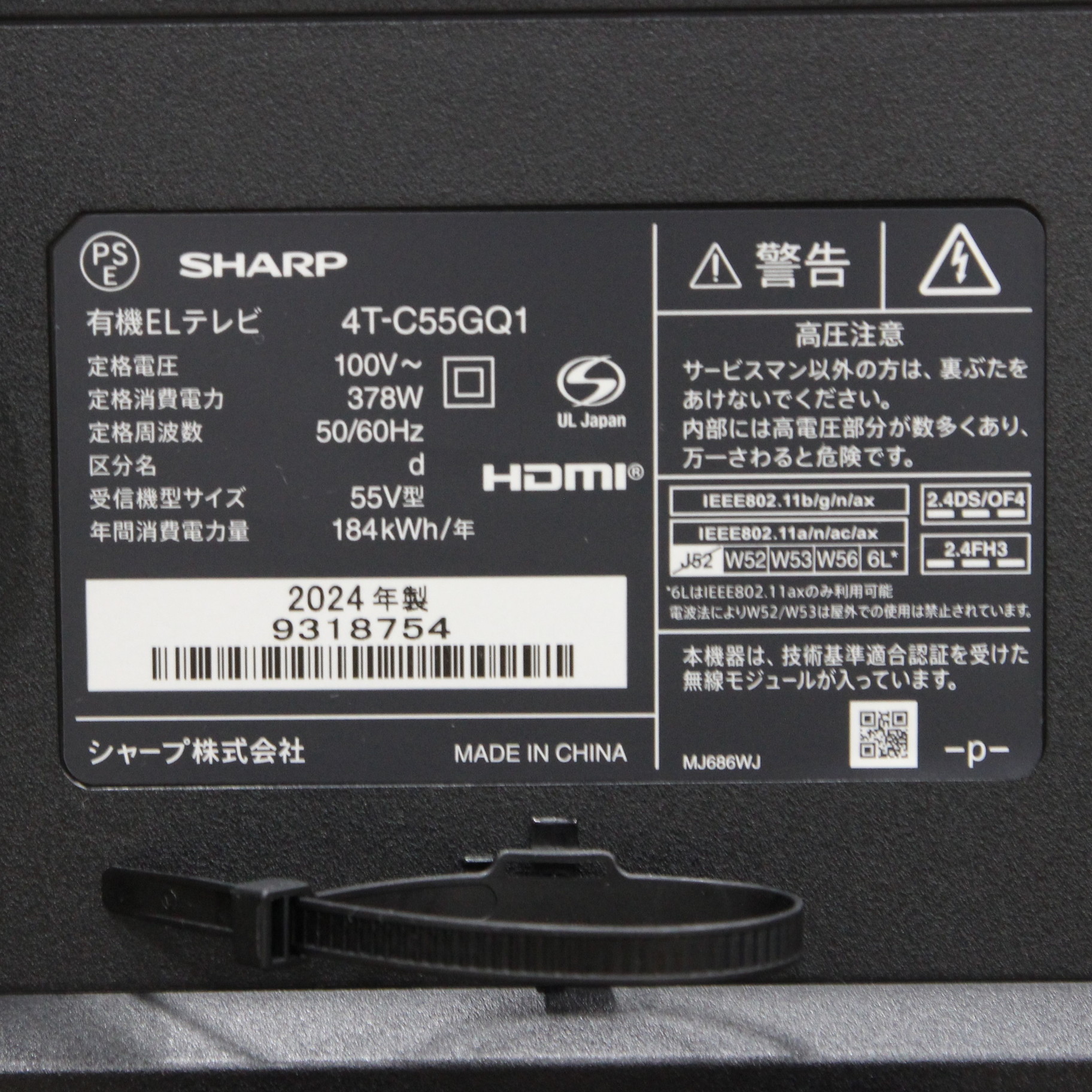 〔展示品〕 有機ELテレビ AQUOS ブラック 4T-C55GQ1 [55V型 /Bluetooth対応 /4K対応 /BS・CS 4Kチューナー内蔵 /YouTube対応]
