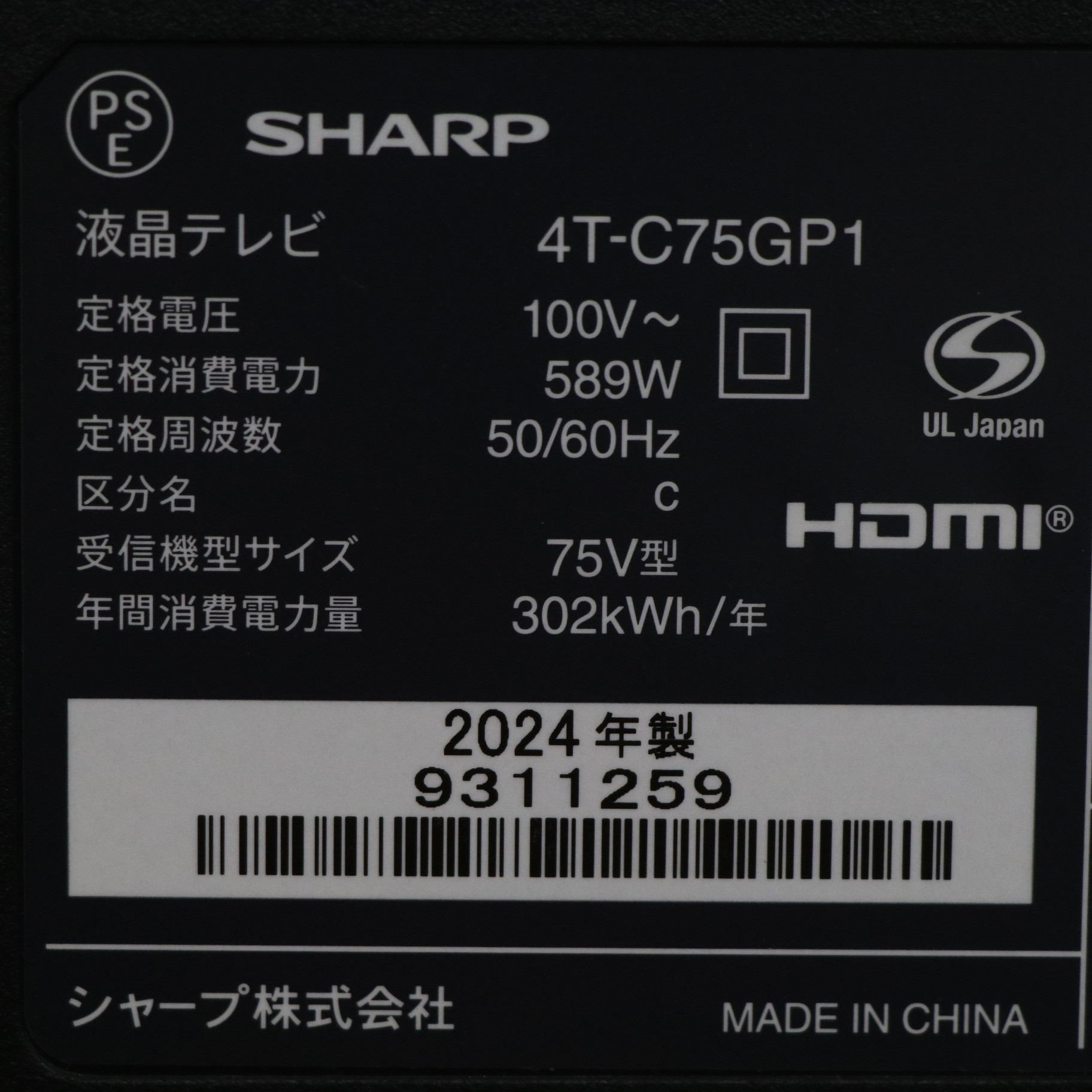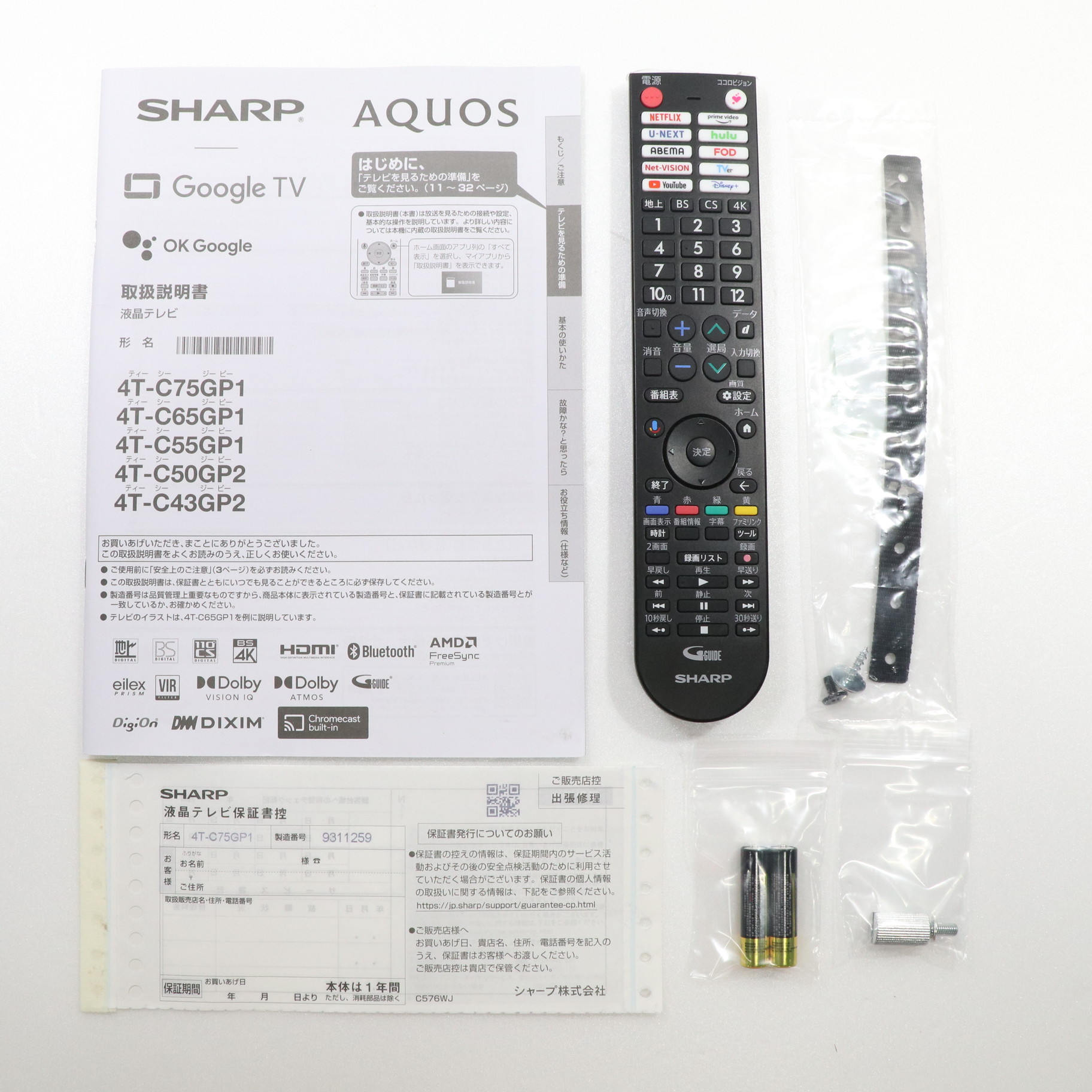 〔展示品〕 液晶テレビ AQUOS ブラック 4T-C75GP1 [75V型 /Bluetooth対応 /4K対応 /BS・CS 4Kチューナー内蔵 /YouTube対応]