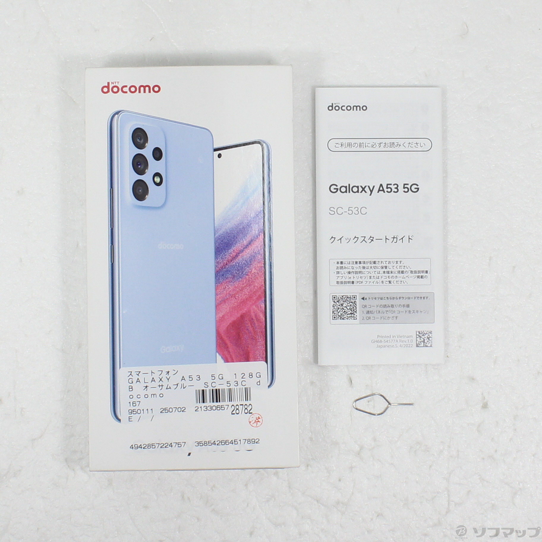 〔中古品〕 GALAXY A53 5G 128GB オーサムブルー SC-53C docomo SIMフリー 〔ネットワーク利用制限▲〕 [6.5インチ有機EL/Exynos 1280]