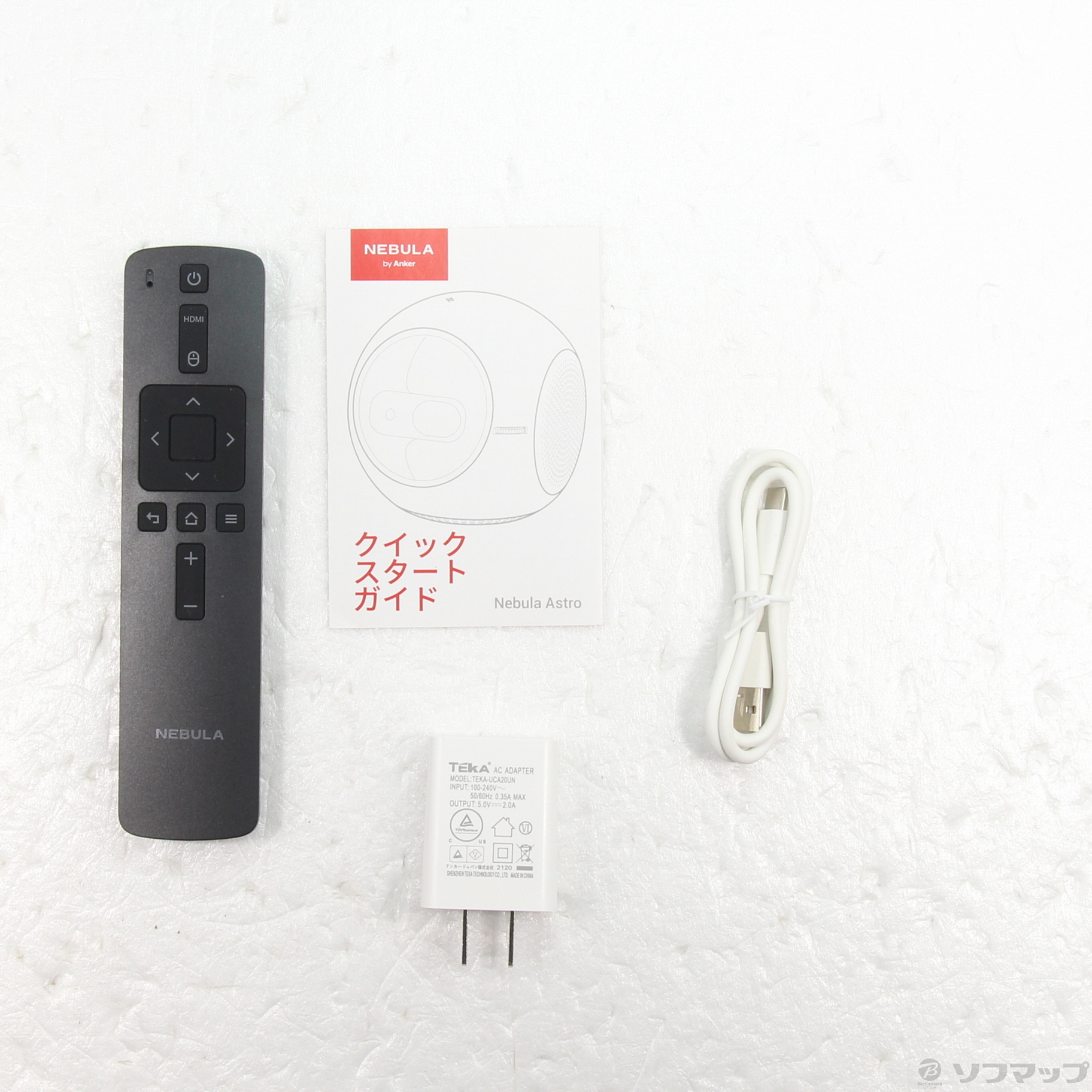 〔付属品〕クイックスタートガイド、USB充電器、リモコン、USB-A&USB-Cケーブル