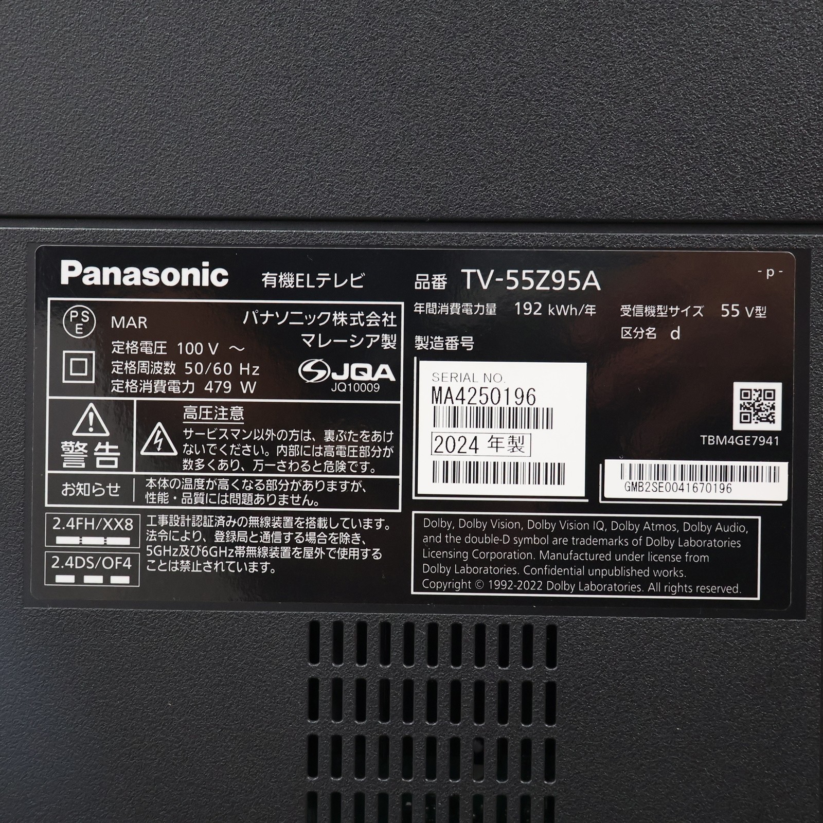 中古商品ランクについて 付属品・商品状態について 〔付属品〕取扱説明書、スタートガイド、リモコン、ケーブルカバー、転倒防止スタンド、本体固定用ねじ×4、転倒・落下防止部品一式