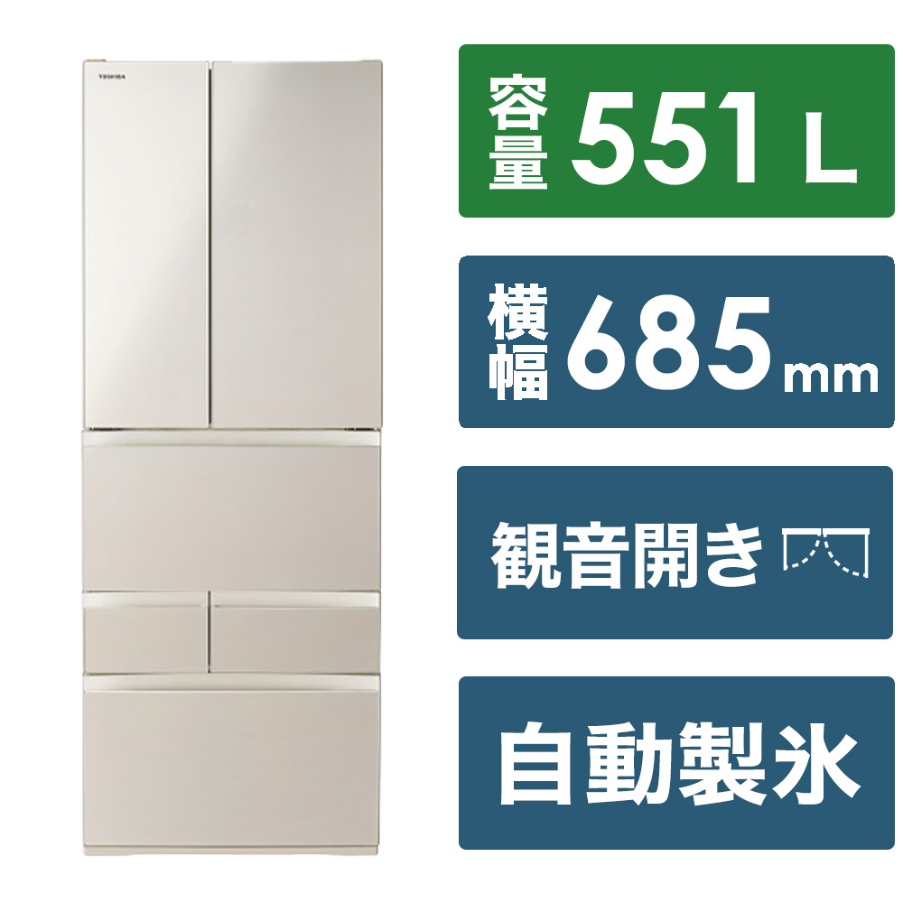 〔展示品〕 冷蔵庫 VEGETA(ベジータ)FKシリーズ サテンゴールド GR-W550FK-EC [幅68.5cm /551L /6ドア /観音開きタイプ /2024年]
